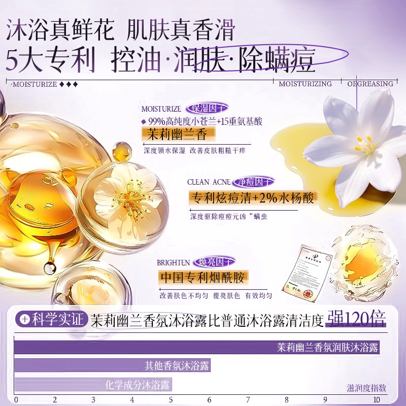 幽兰沐浴露持久留香72小时保湿补水滋润除螨祛痘成人男女士