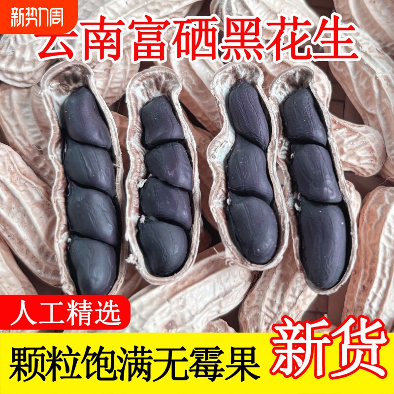 富硒黑花生带壳黑花生2025新货云南普洱特产晒干生熟黑皮花生米