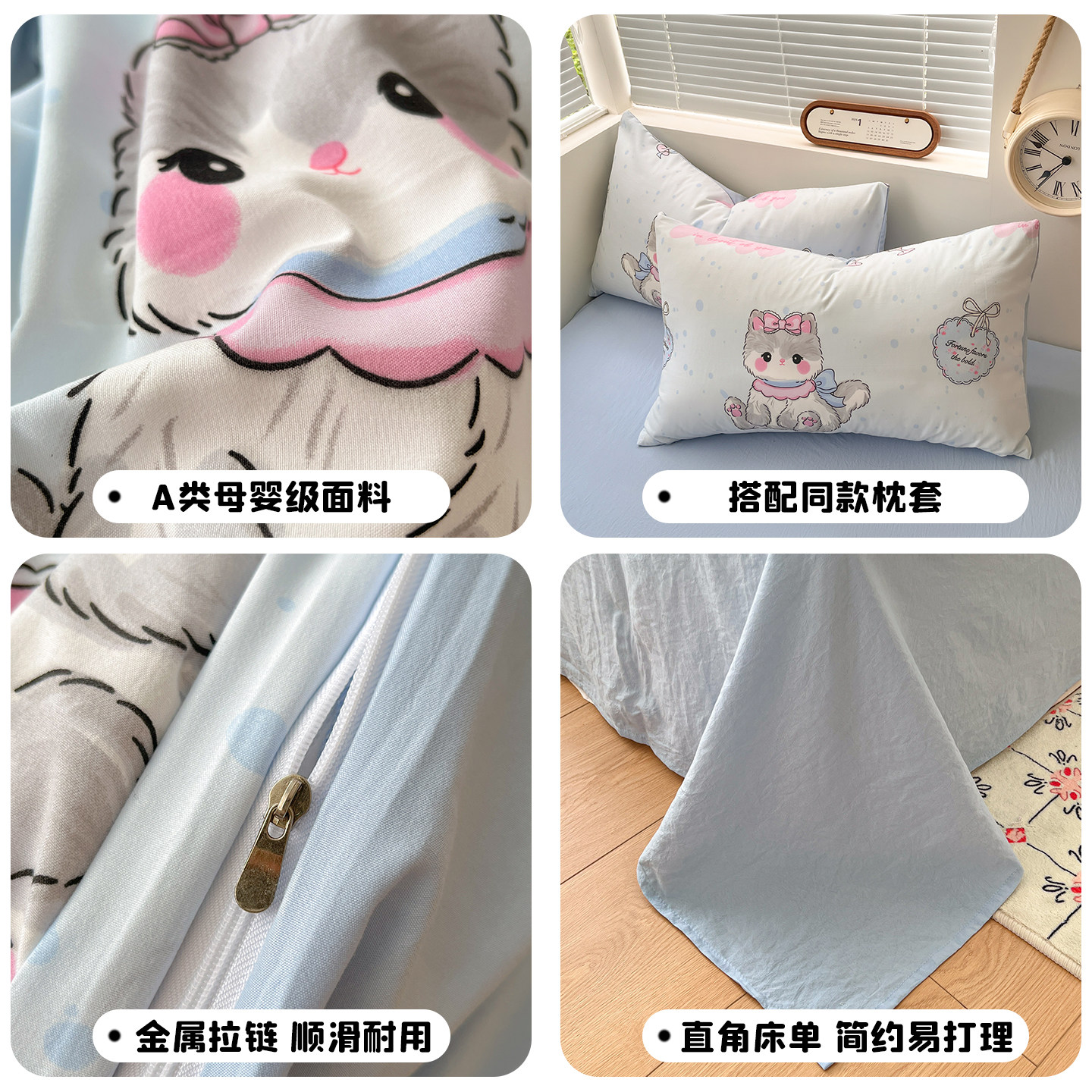可爱猫咪四件套纯棉全棉床上用品单件被套床单床笠学生宿舍三件套