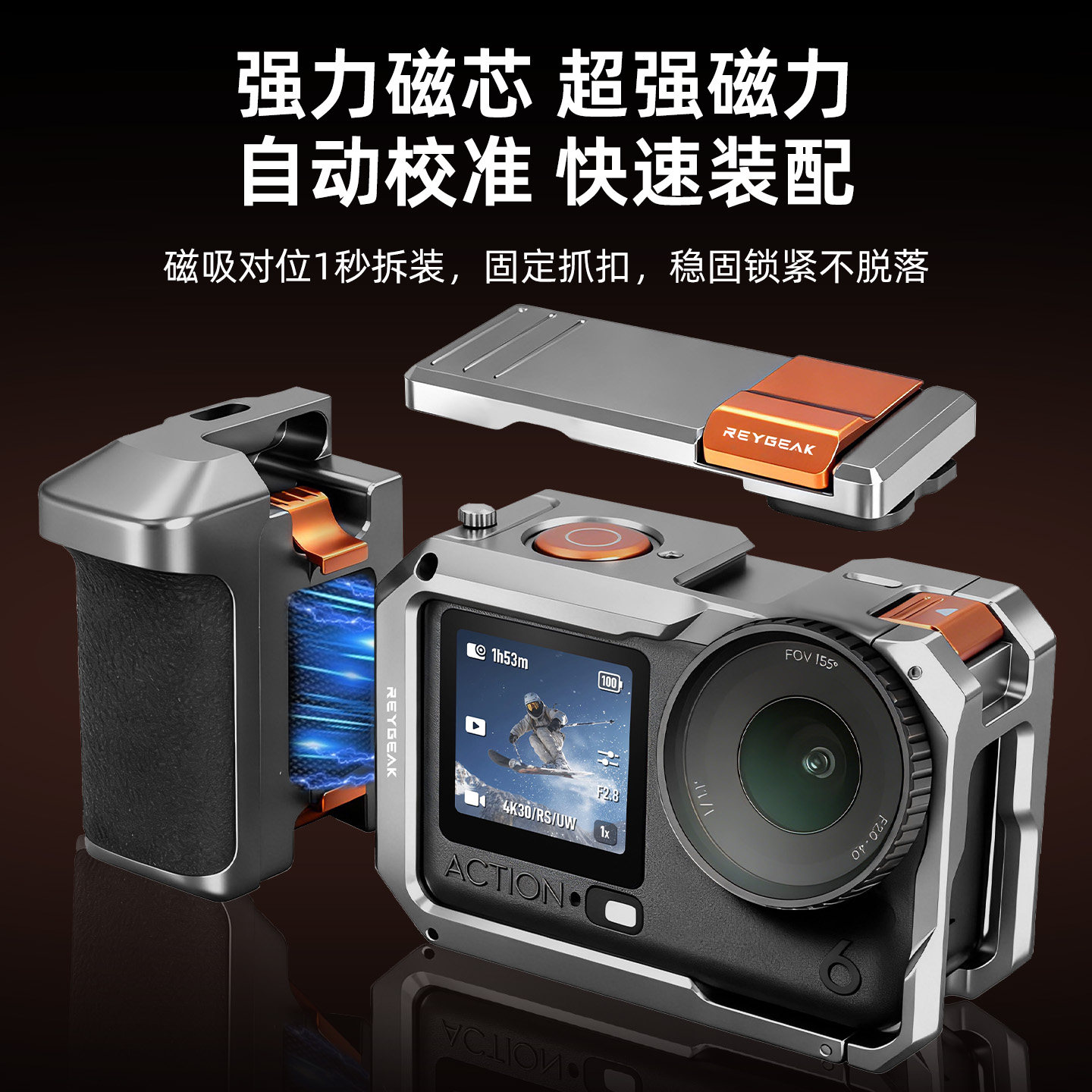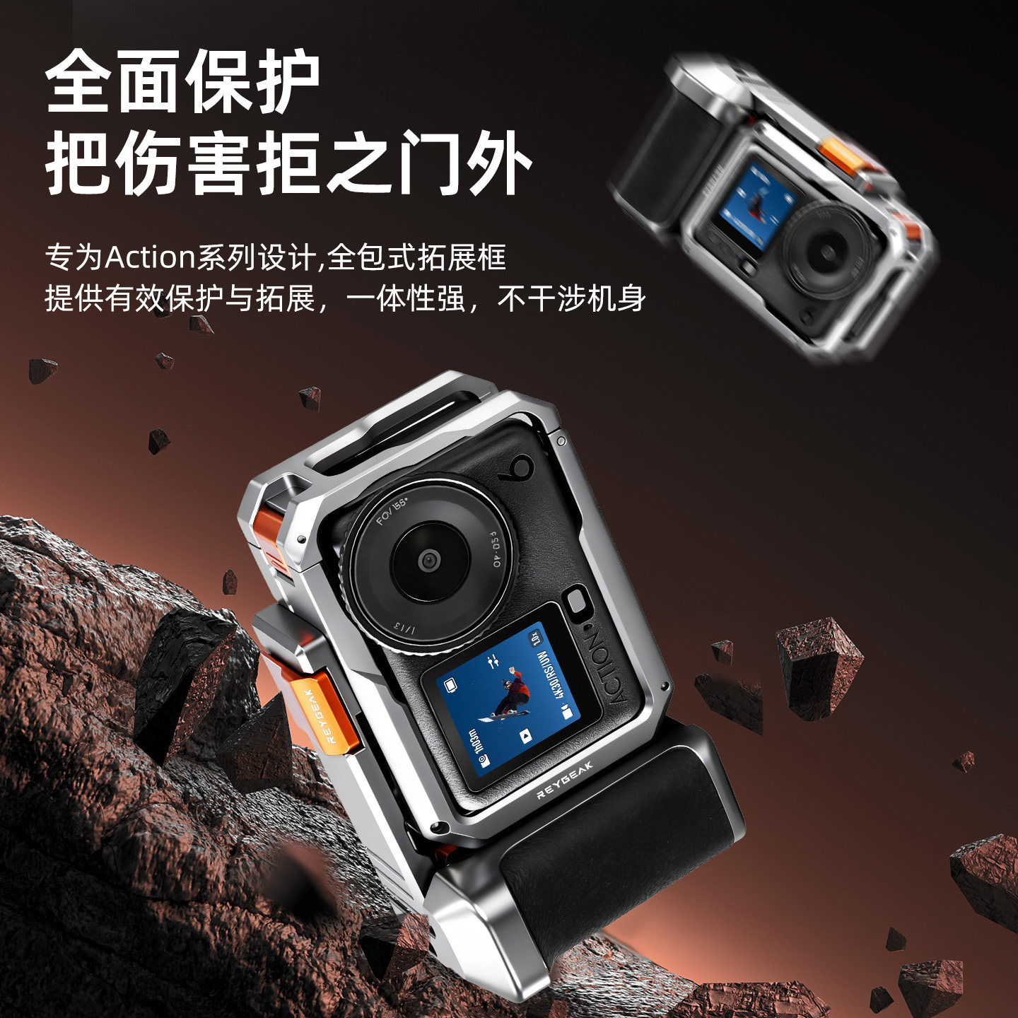 REYGEAK锐际适用大疆Action6金属兔笼街拍套装action6街拍手柄快门按键保护边框相机拓展街拍兔笼配件