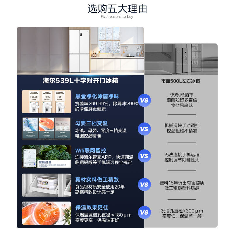 政府补贴超薄零嵌海尔统帅悦己懒人520十字对开四门大容量电冰箱