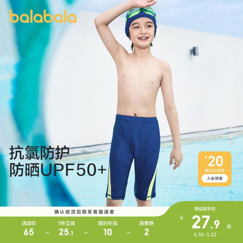 巴拉巴拉男童泳衣套装中大童泳装防晒青少年带帽子柔软弹力泡温泉