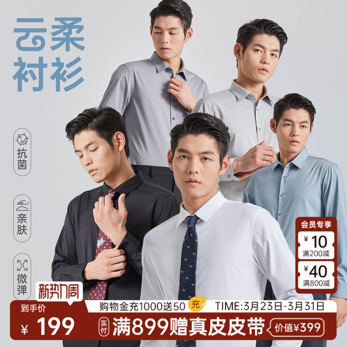 【抗菌莫代尔】利郎官方商务衬衫男正装春男士长袖西装白衬衣男款