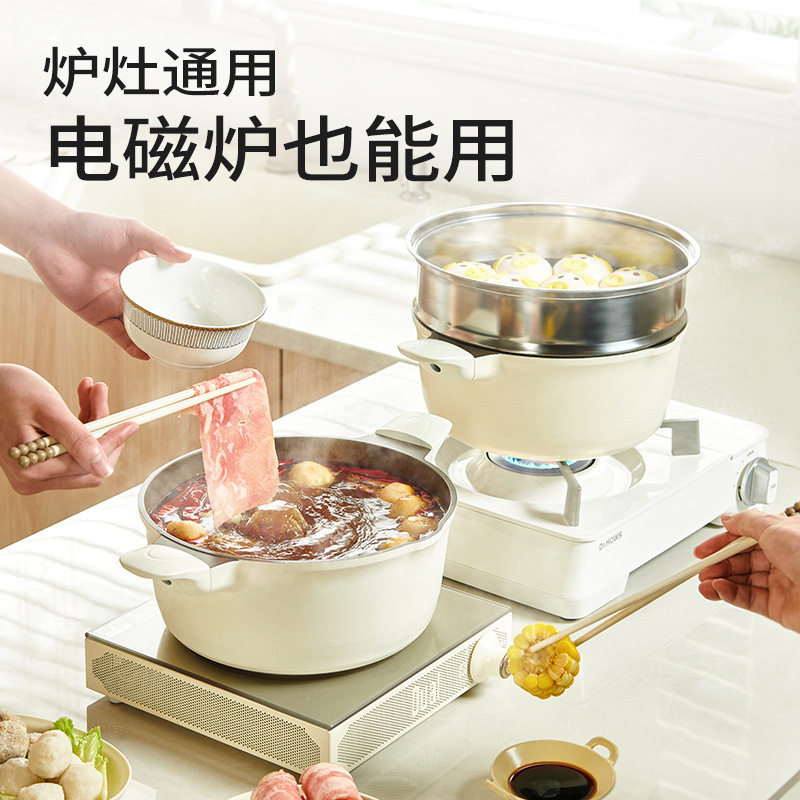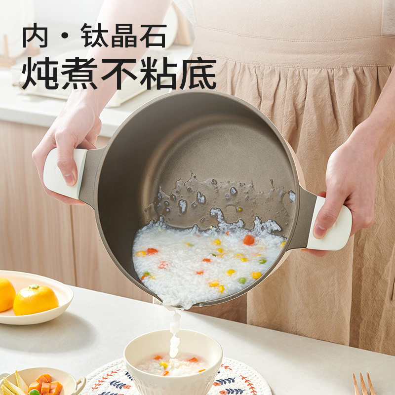 苏泊尔钛上钛新款汤锅家用陶瓷不粘锅双耳炖煮锅蒸锅搪瓷锅电磁炉