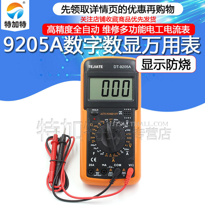 防烧数字表 DT9205A高精度全自动家用维修多功能电工万用表电流表