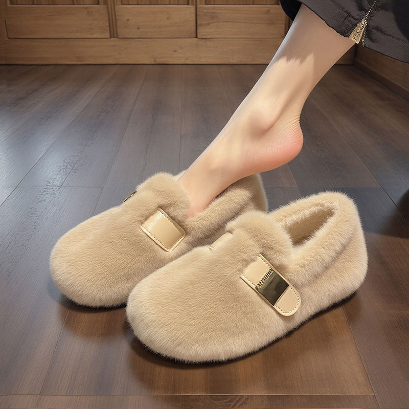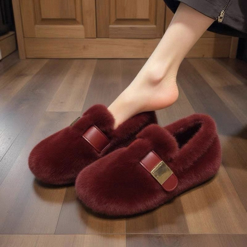 低帮厚底雪地靴女2025新款冬季懒人一脚蹬毛毛棉鞋加绒加厚女鞋子