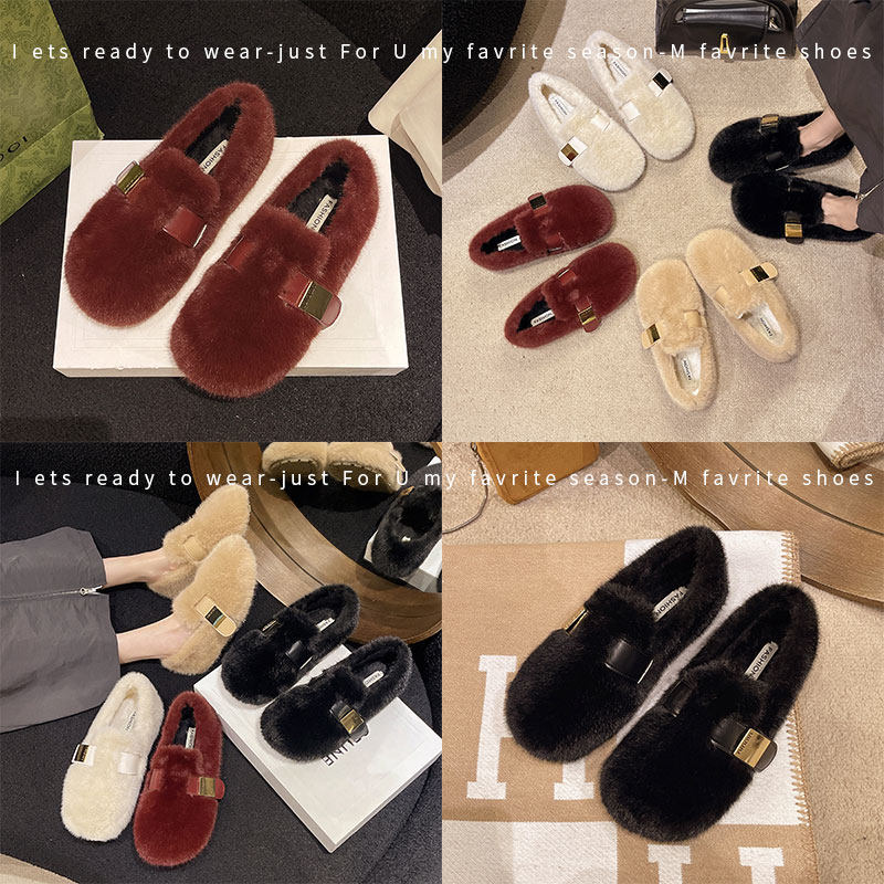 水貂绒黑色毛毛鞋女冬外穿新款小香风高级感一脚蹬保暖雪地靴平底