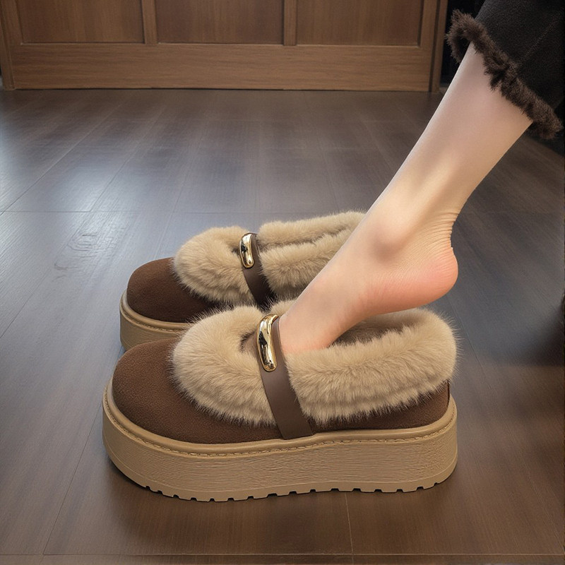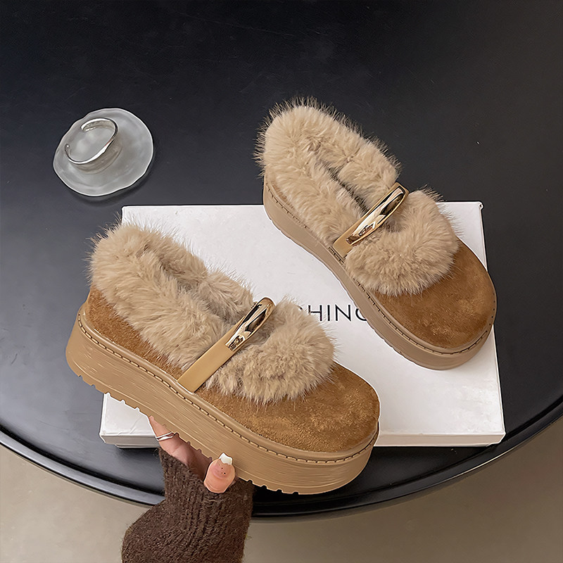 【水貂绒】厚底毛毛鞋女2025新款冬季加绒保暖增高美拉德勃肯棉鞋