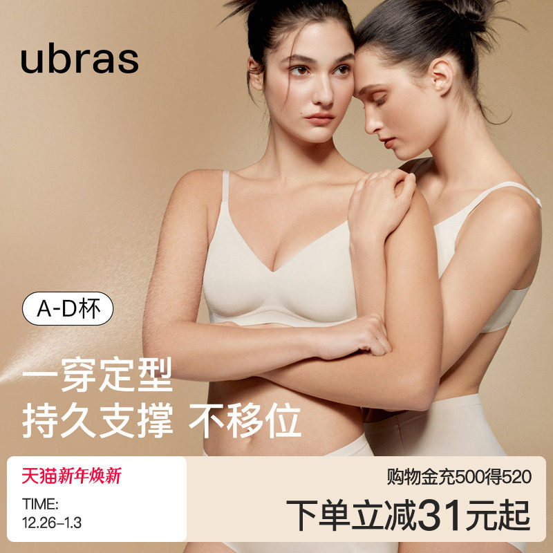 ubras软支撑无钢圈小胸聚拢无痕收副乳粉底液文胸罩内衣女