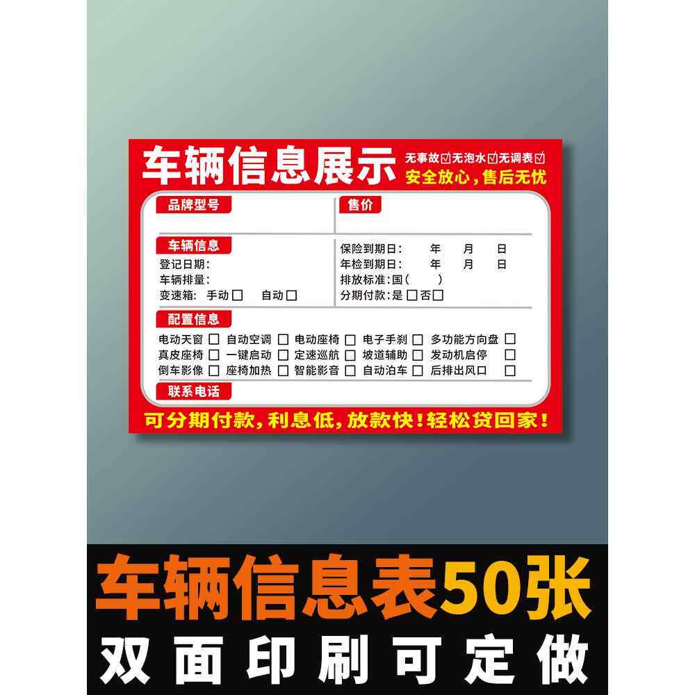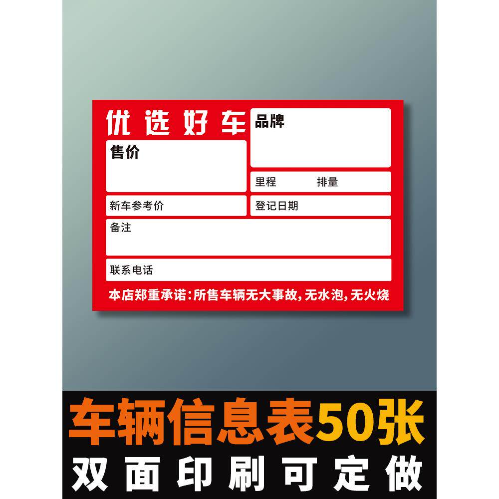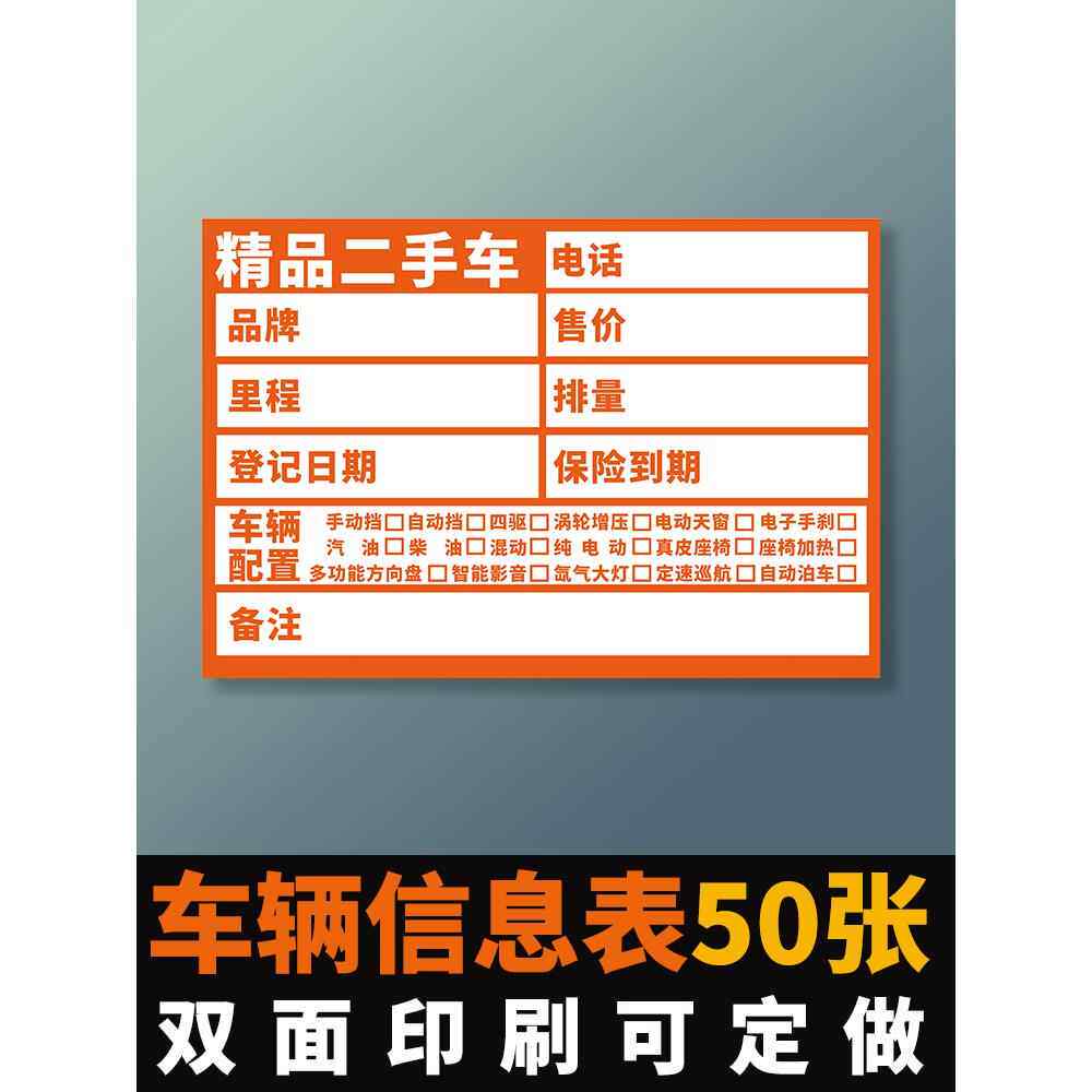 车辆配置信息明细展示牌销售广告牌车商车行二手车价格签设计定制