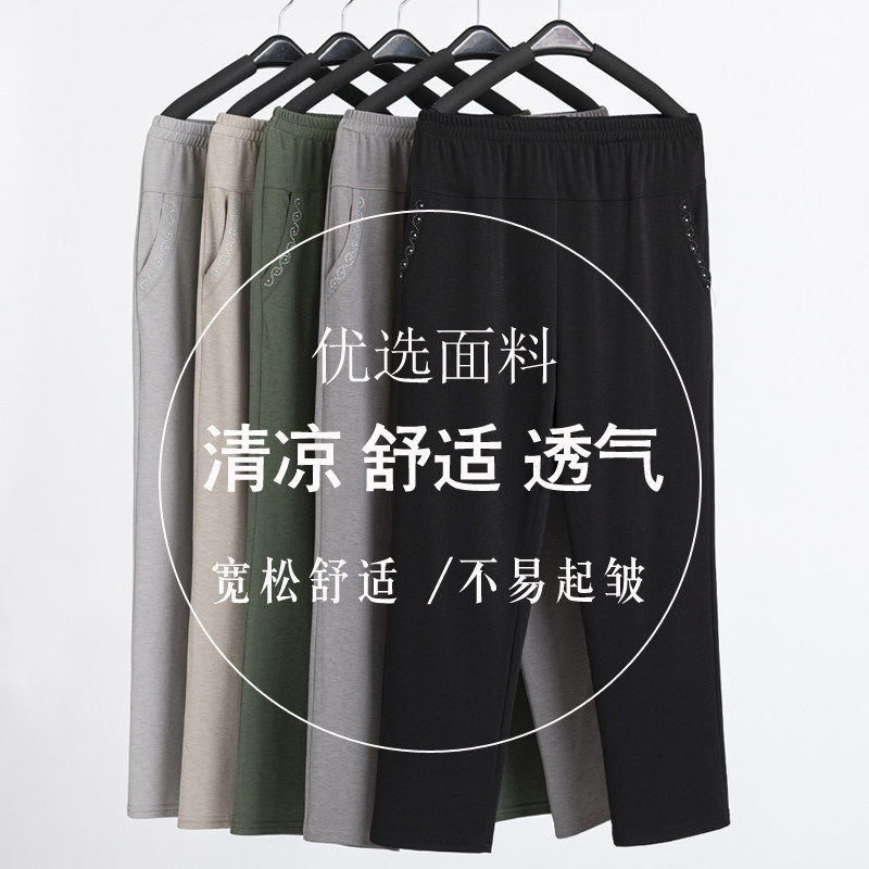 雅鹿妈妈裤子夏季薄款中老年人女裤外穿直筒宽松大码奶奶装九分裤
