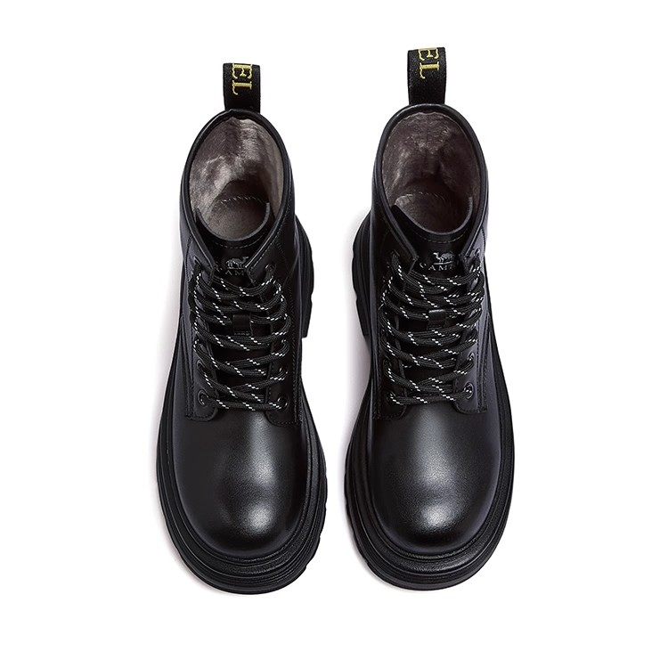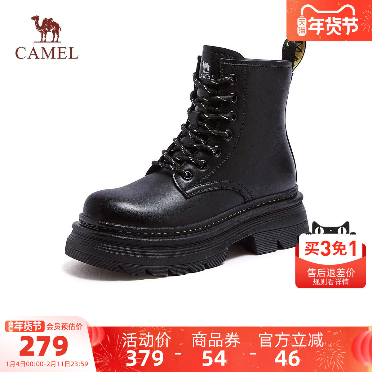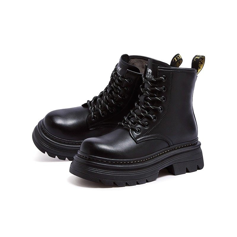 骆驼女鞋2025冬季新款真皮英伦拉链休闲粗跟厚底短靴中筒马丁靴女