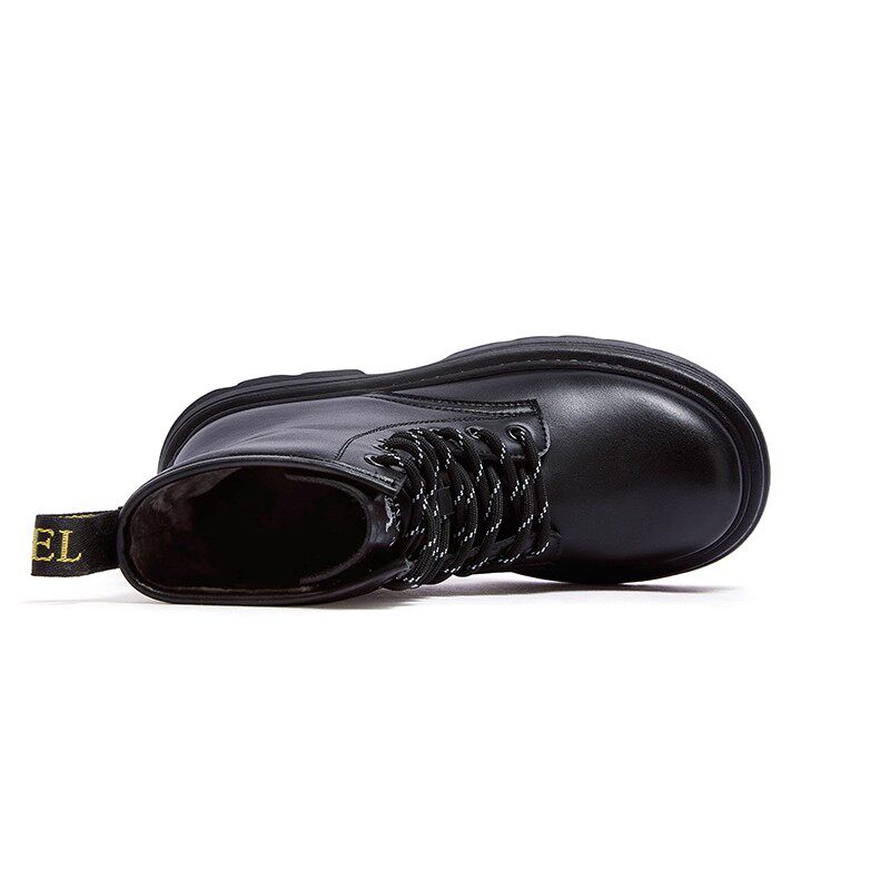 天美意厚底增高加绒英伦马丁靴大黄靴女鞋子休闲短靴皮靴冬季新款