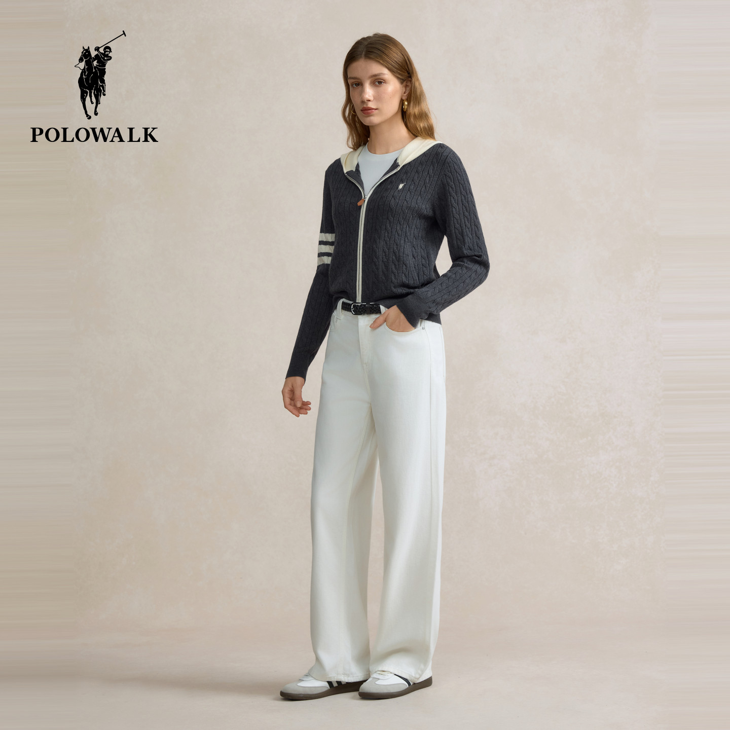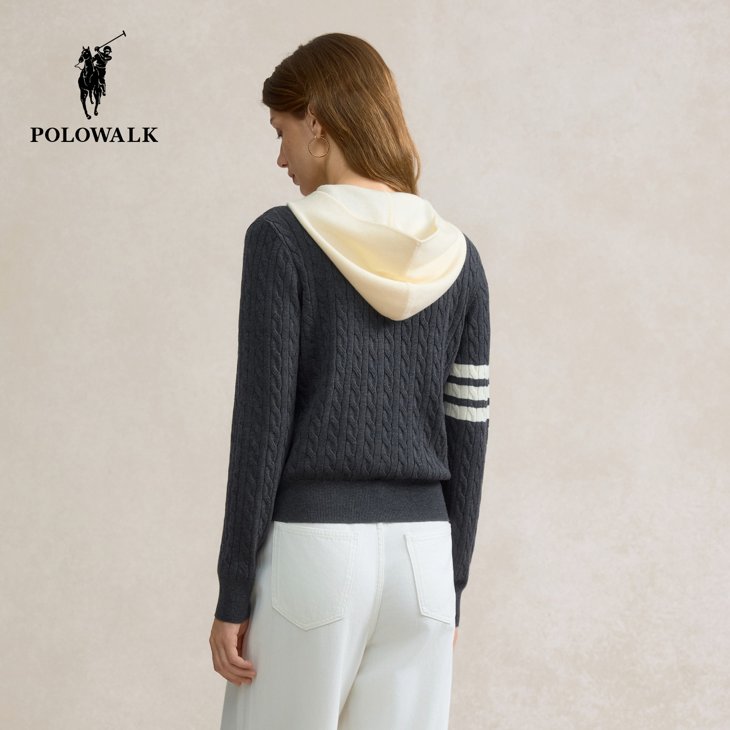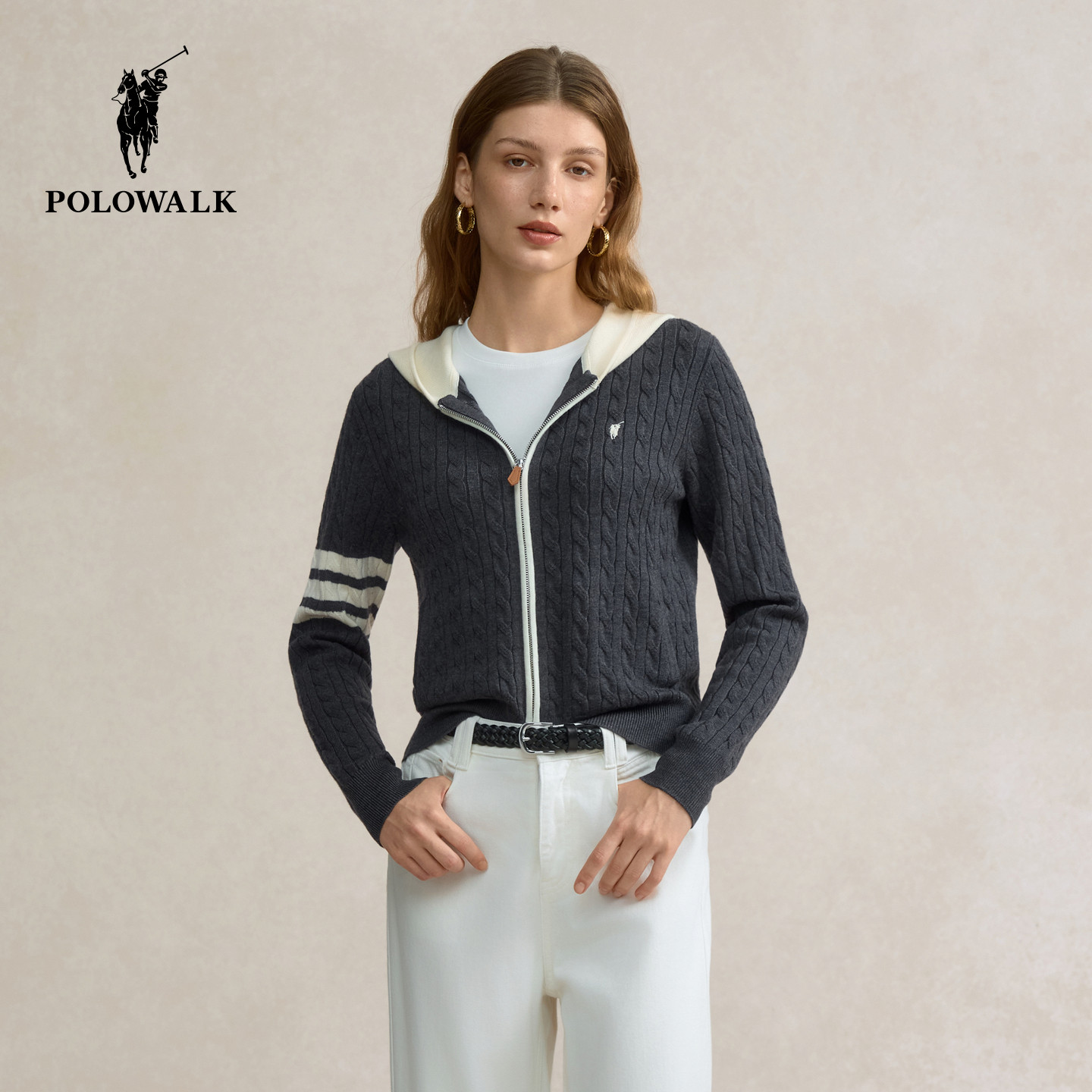 POLOWALK女装2025秋季新品女式长袖针织衫连帽设计感针织开衫TB风