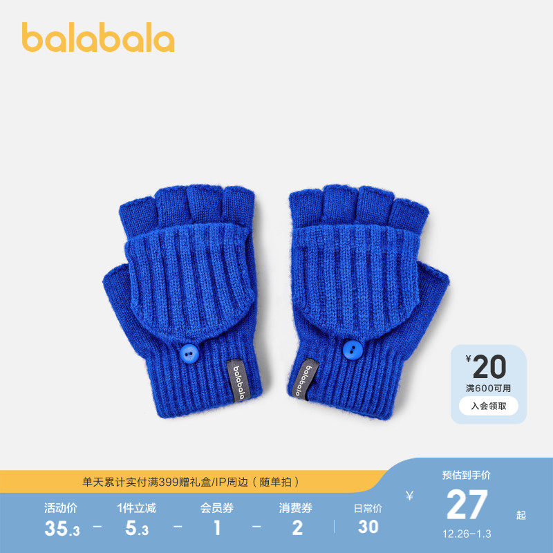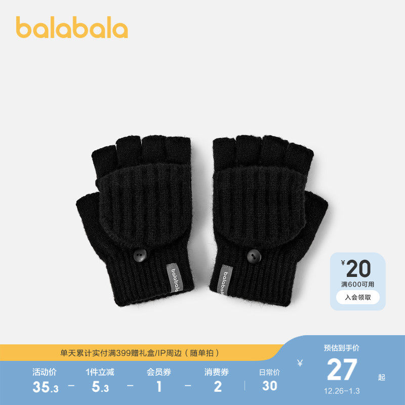 巴拉巴拉balaOne儿童手套男童女童半指翻盖手套保暖2025新款舒适