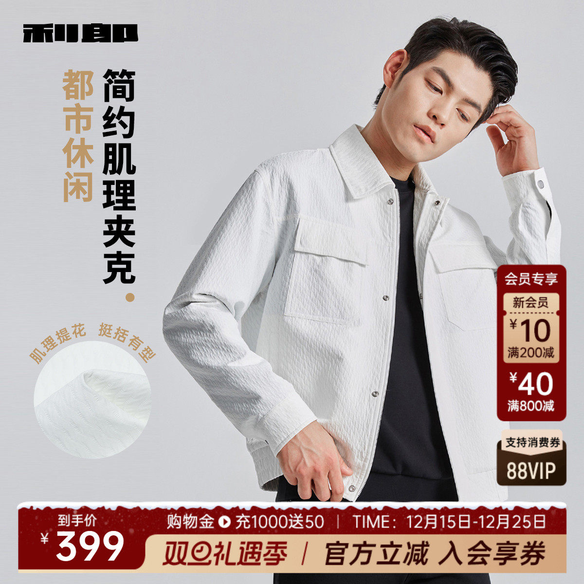 利郎官方底特律夹克男白色工装翻领2025新款短款肌理春秋外套男装