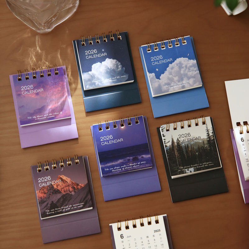 盐岛时光 2026年迷你风景小台历 高颜值桌面装饰摆件日历打卡月历