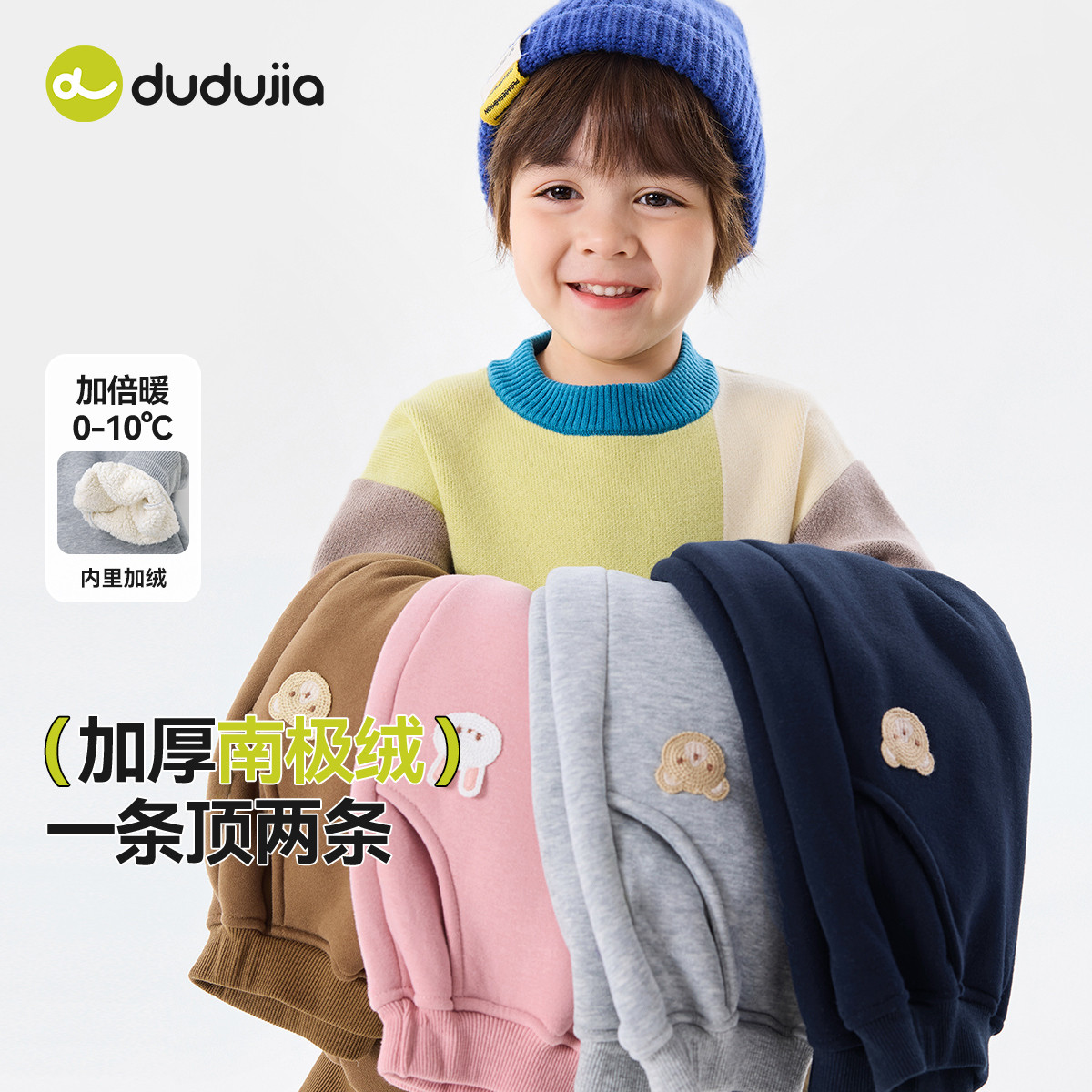 [南极绒]嘟嘟家男童裤子秋冬儿童童装冬季宝宝长裤女童冬装休闲裤
