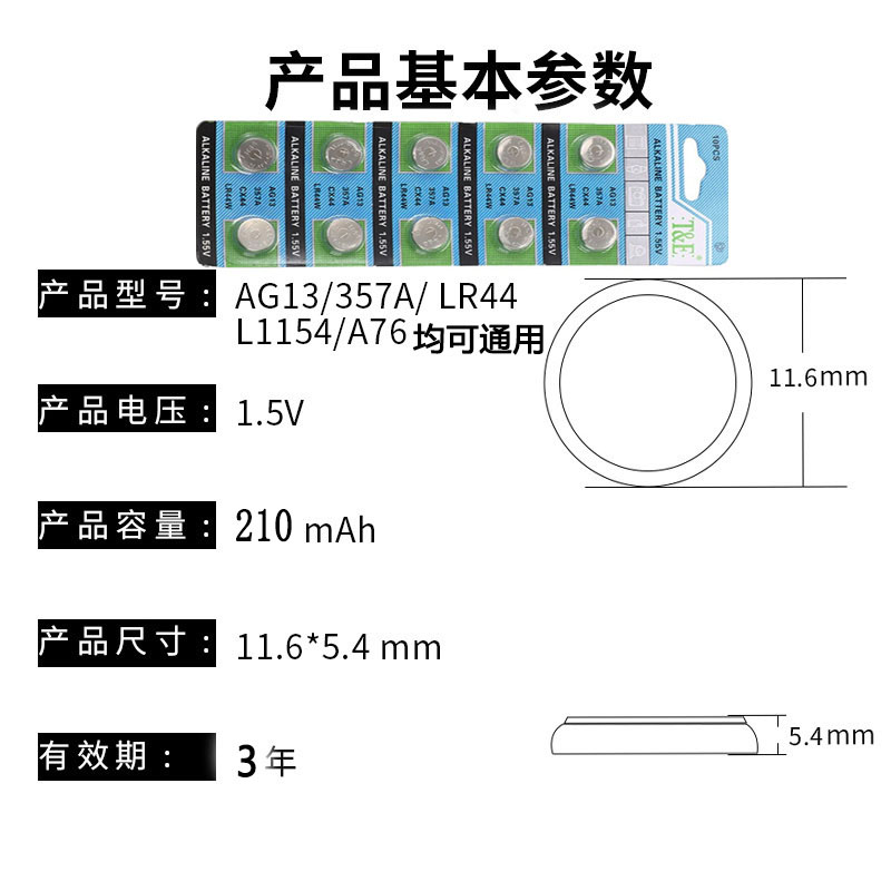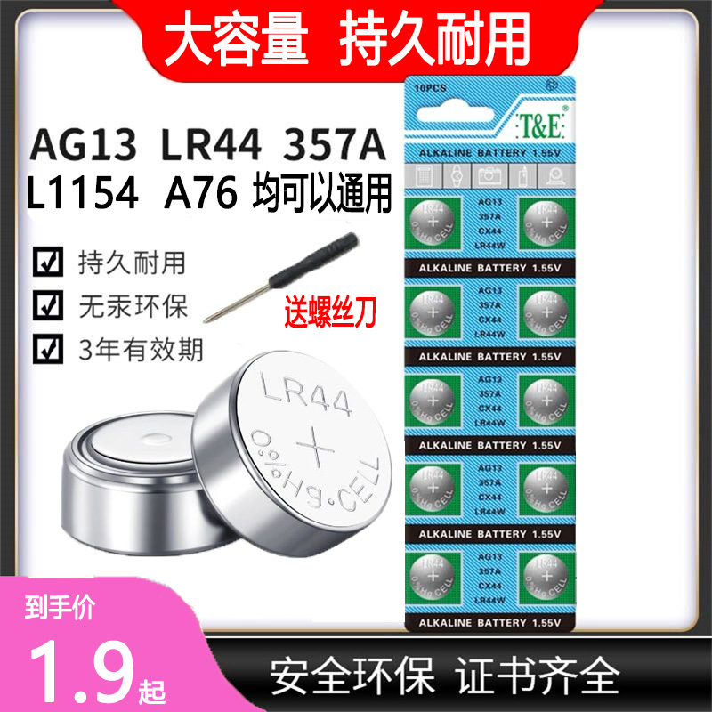 LR44纽扣电池AG13 L1154 A76 357A电子手表玩具遥控器计算器卡尺
