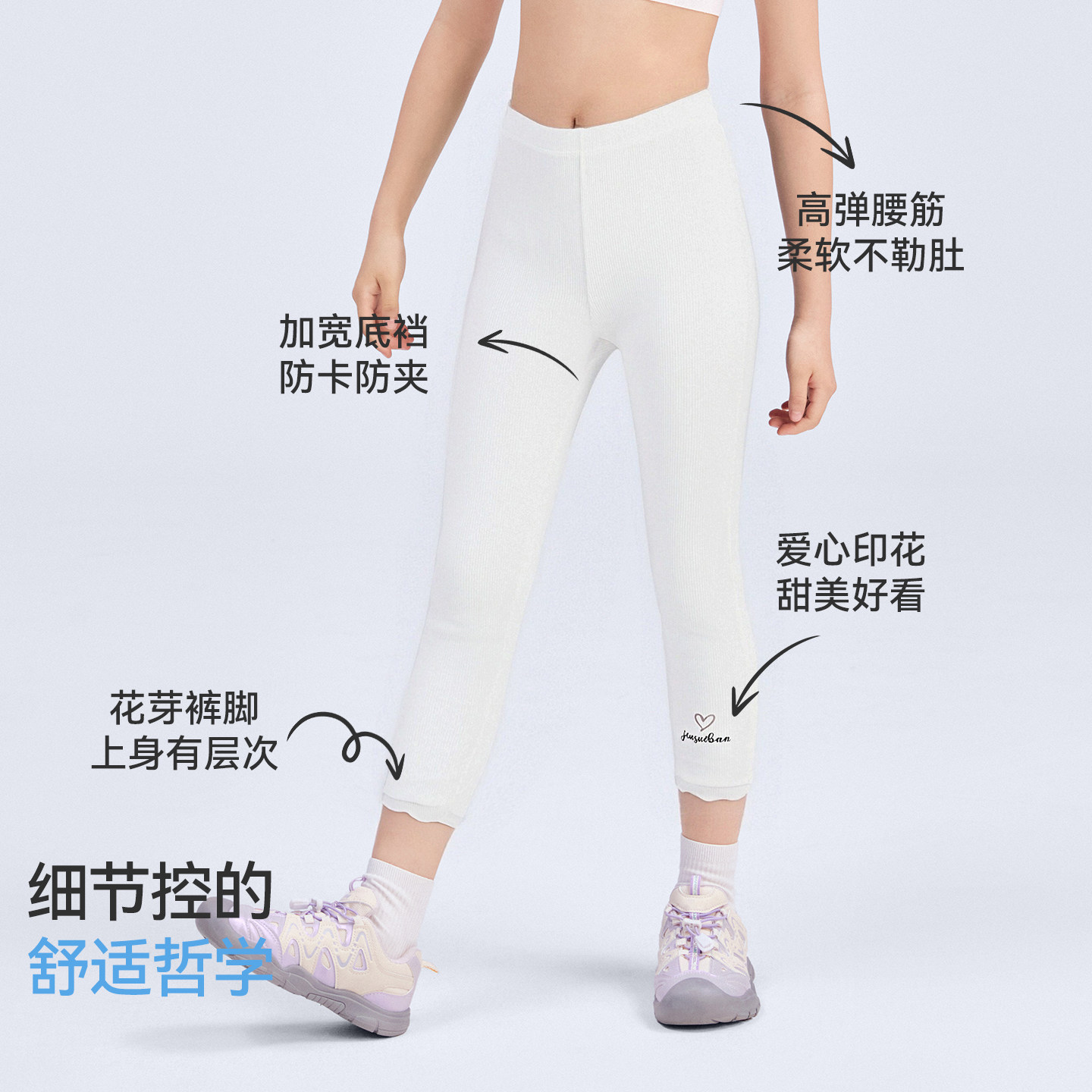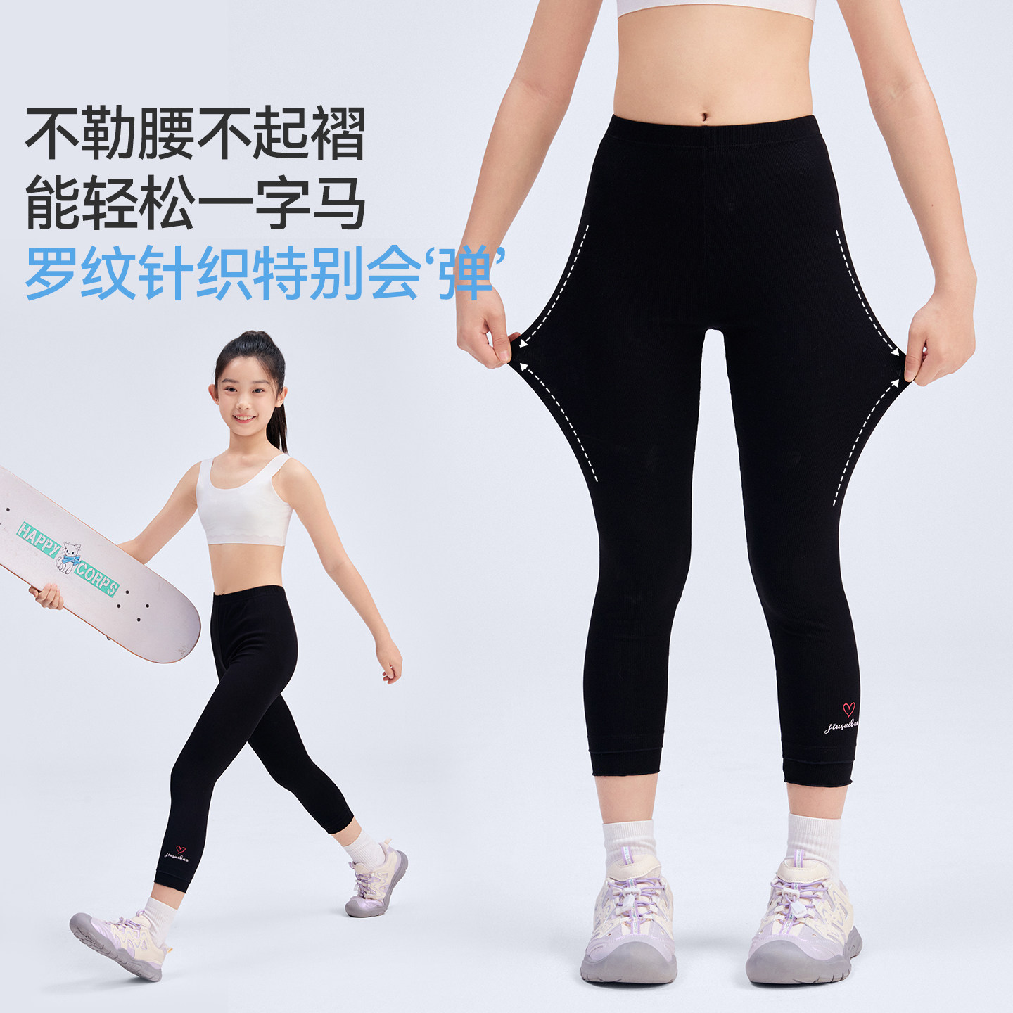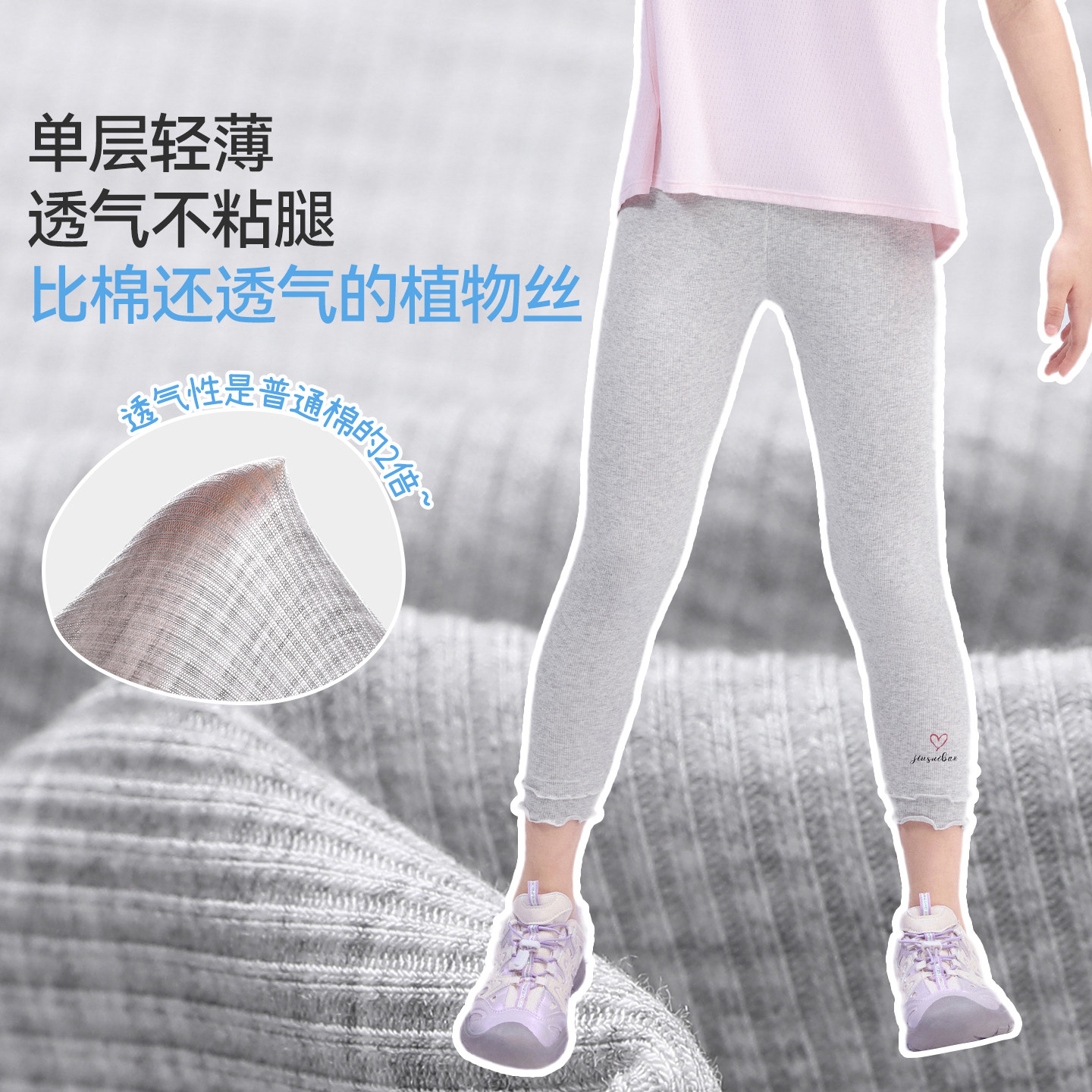 久岁伴女童打底裤2026春夏花芽芽裤子中大童透气运动不卡裆长裤