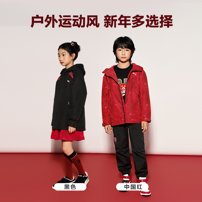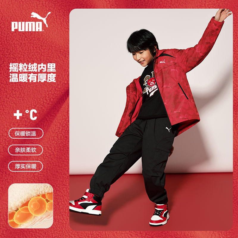 【新年款】PUMA彪马童装新款儿童便服外套连帽上衣红色加绒外套