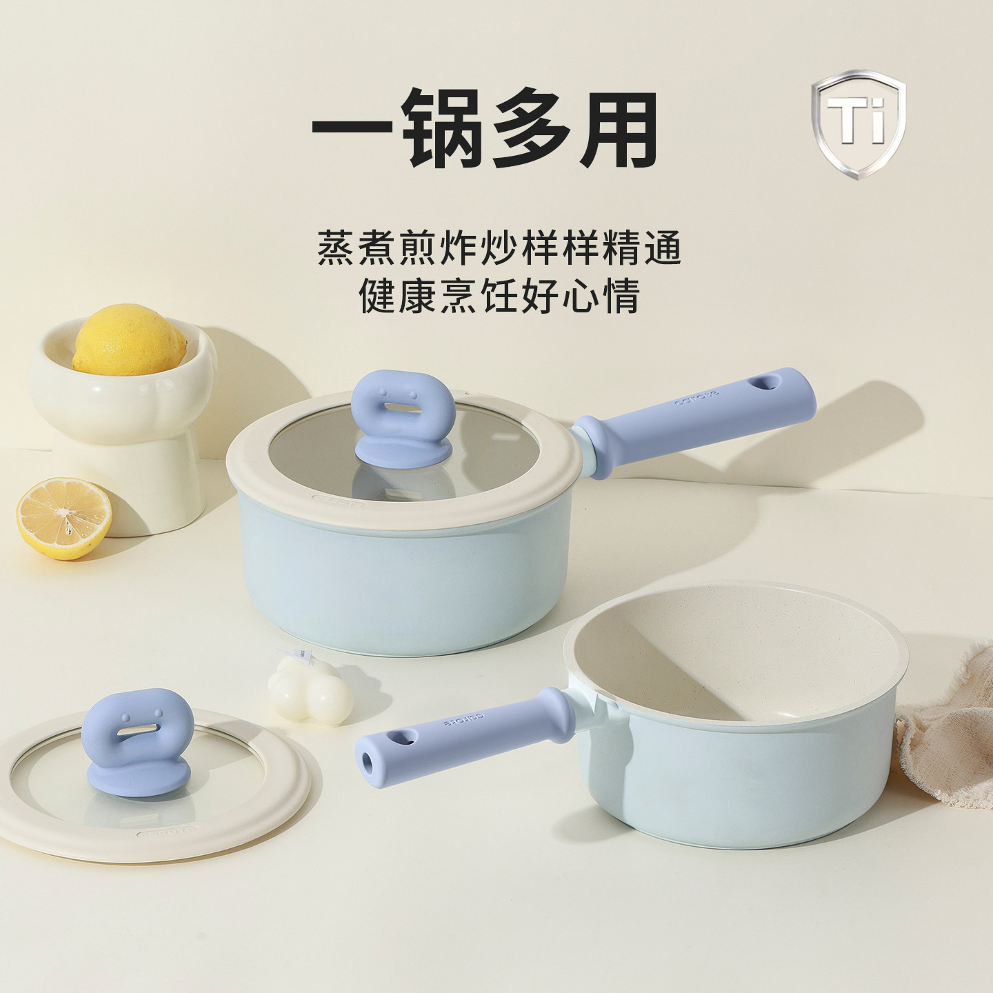卡罗特奶锅钛不粘锅婴儿宝宝辅食锅麦饭石小锅蒸煮面一体家用汤锅