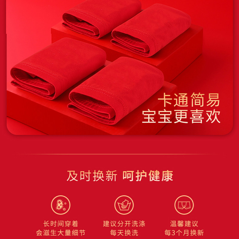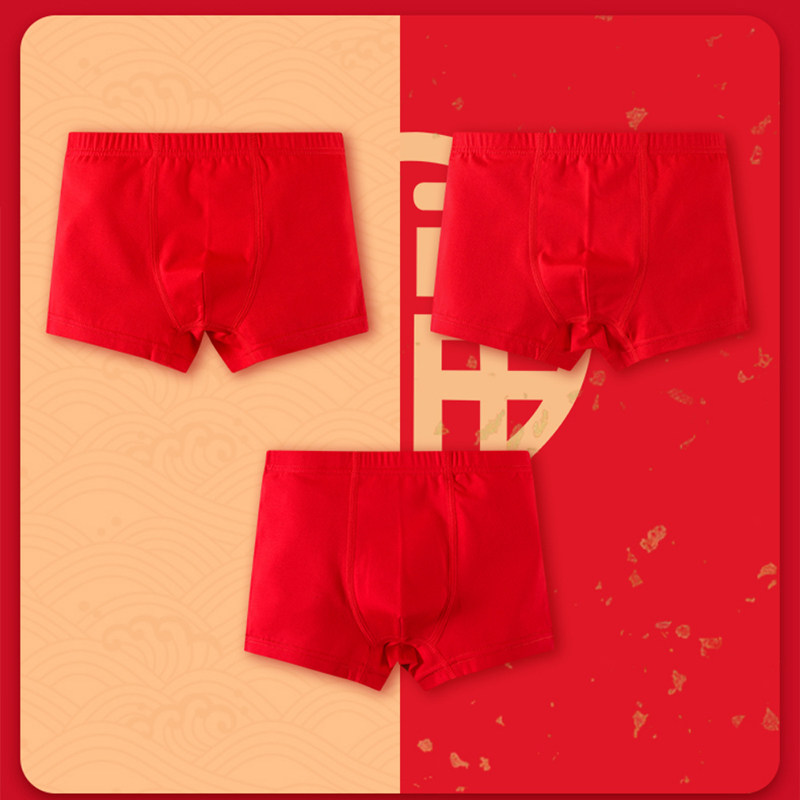 男童大红色本命年纯棉内裤四角裤衩龙年属龙男宝宝中小童平角短裤