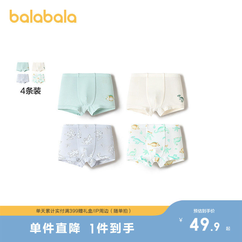 巴拉巴拉儿童内裤棉平角男童防走光四角短裤宝宝莫代尔亲肤四条装