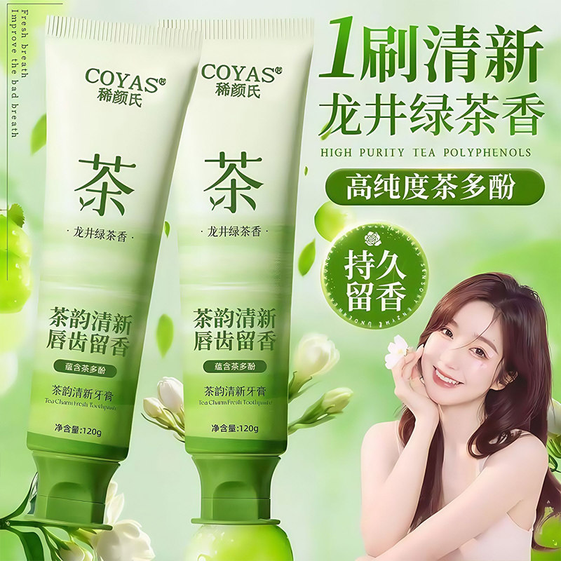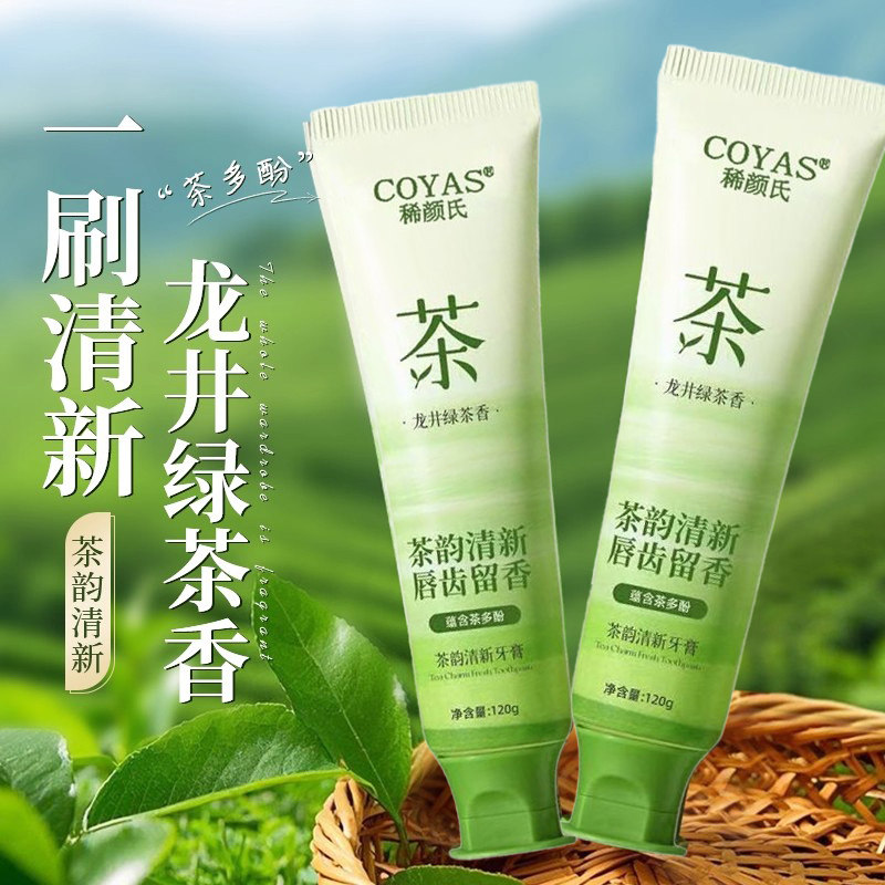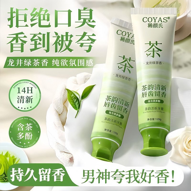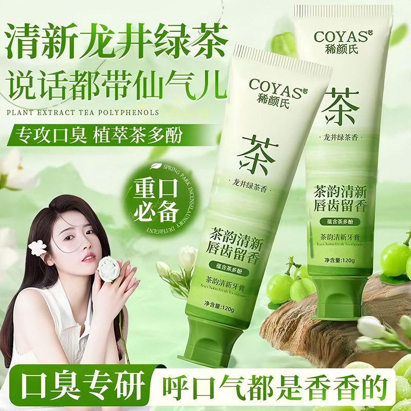 牙膏去黄去口臭美白成人男女专用烟渍除异味亮白茶味清新口气留香