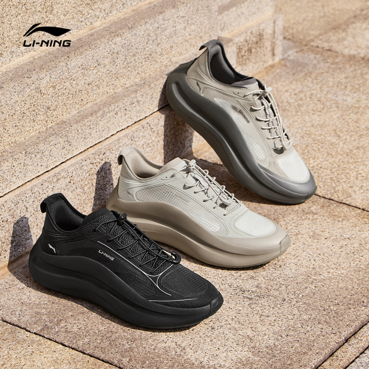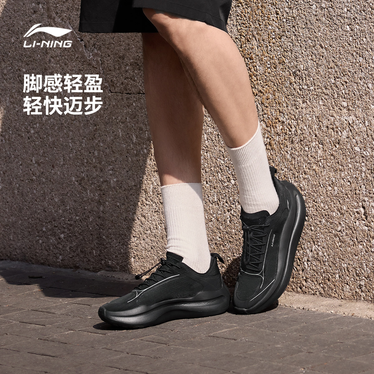 李宁云浪丨休闲鞋男鞋2026夏季新款潮流一脚蹬通勤跑步黑色运动鞋