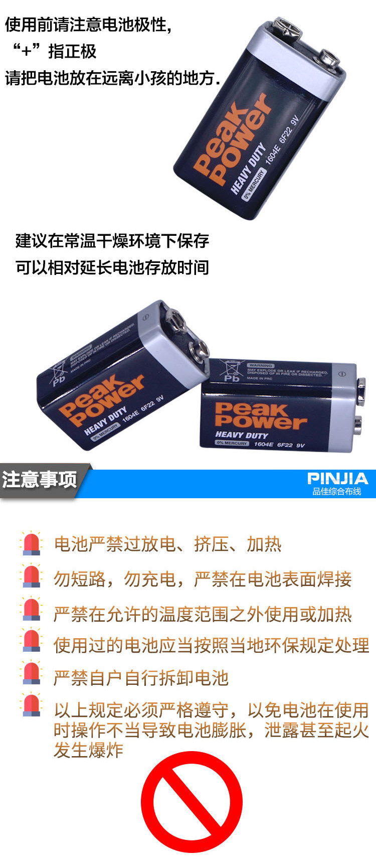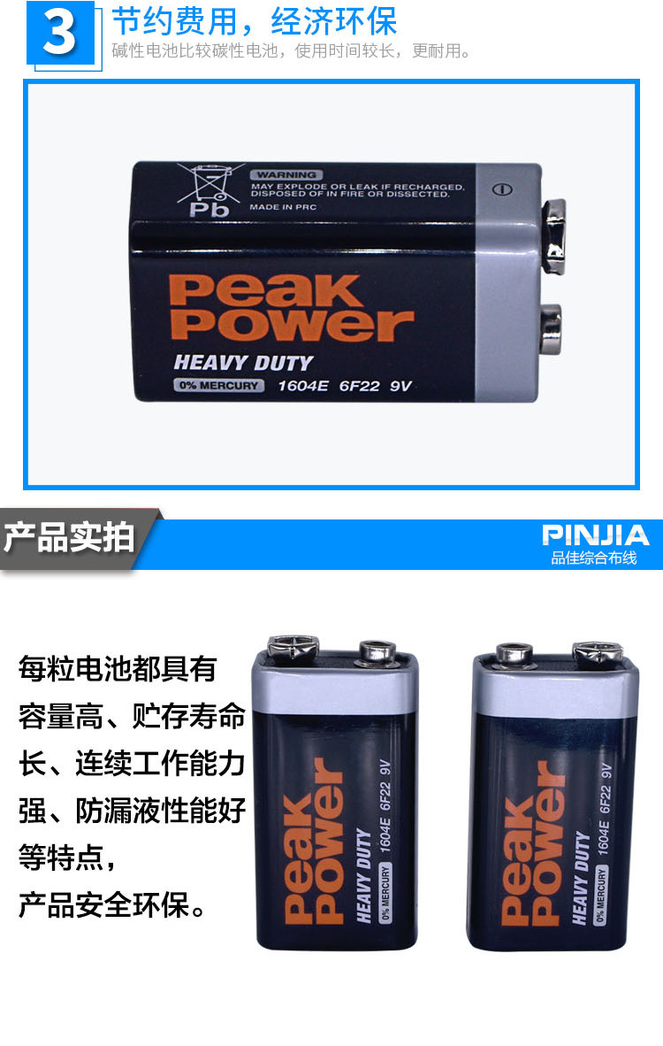 测试仪9V电池6F22叠层1604E遥控器万用表话筒玩具体温枪电池