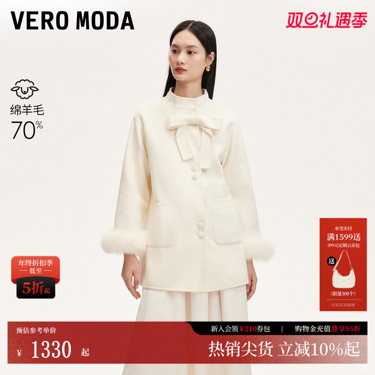 Vero Moda毛呢大衣24冬新款含羊毛可拆狐狸毛袖口双面呢325127002