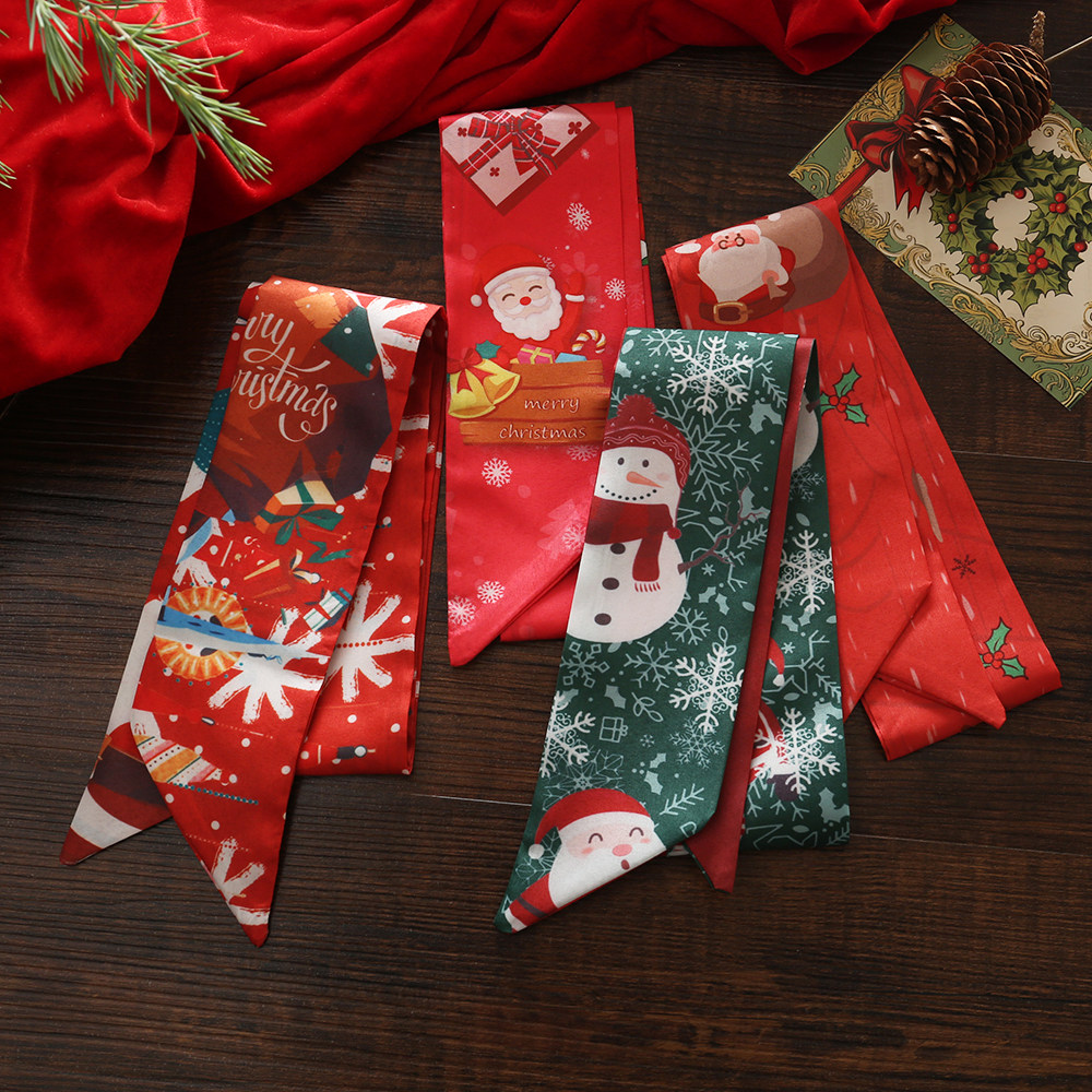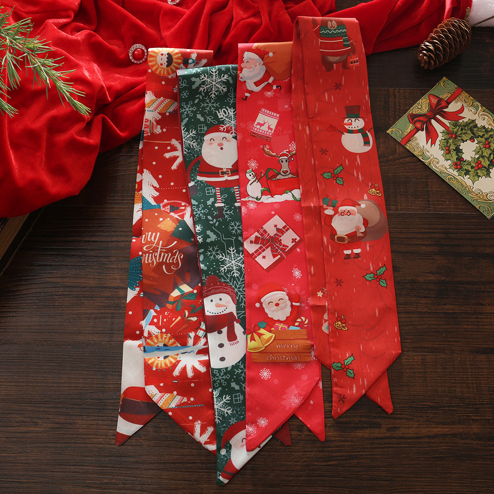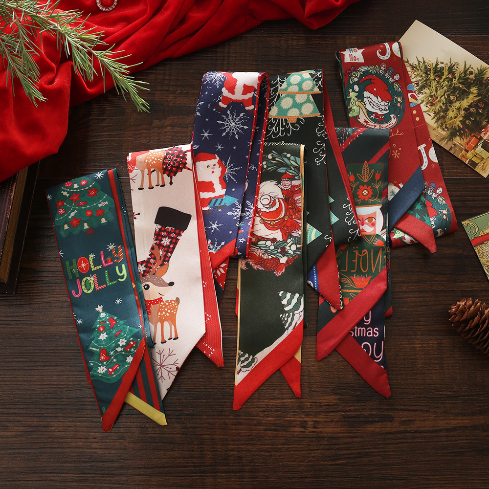爆款圣诞新年细窄丝巾小长条女春秋新款百搭发带领巾百搭装饰发饰