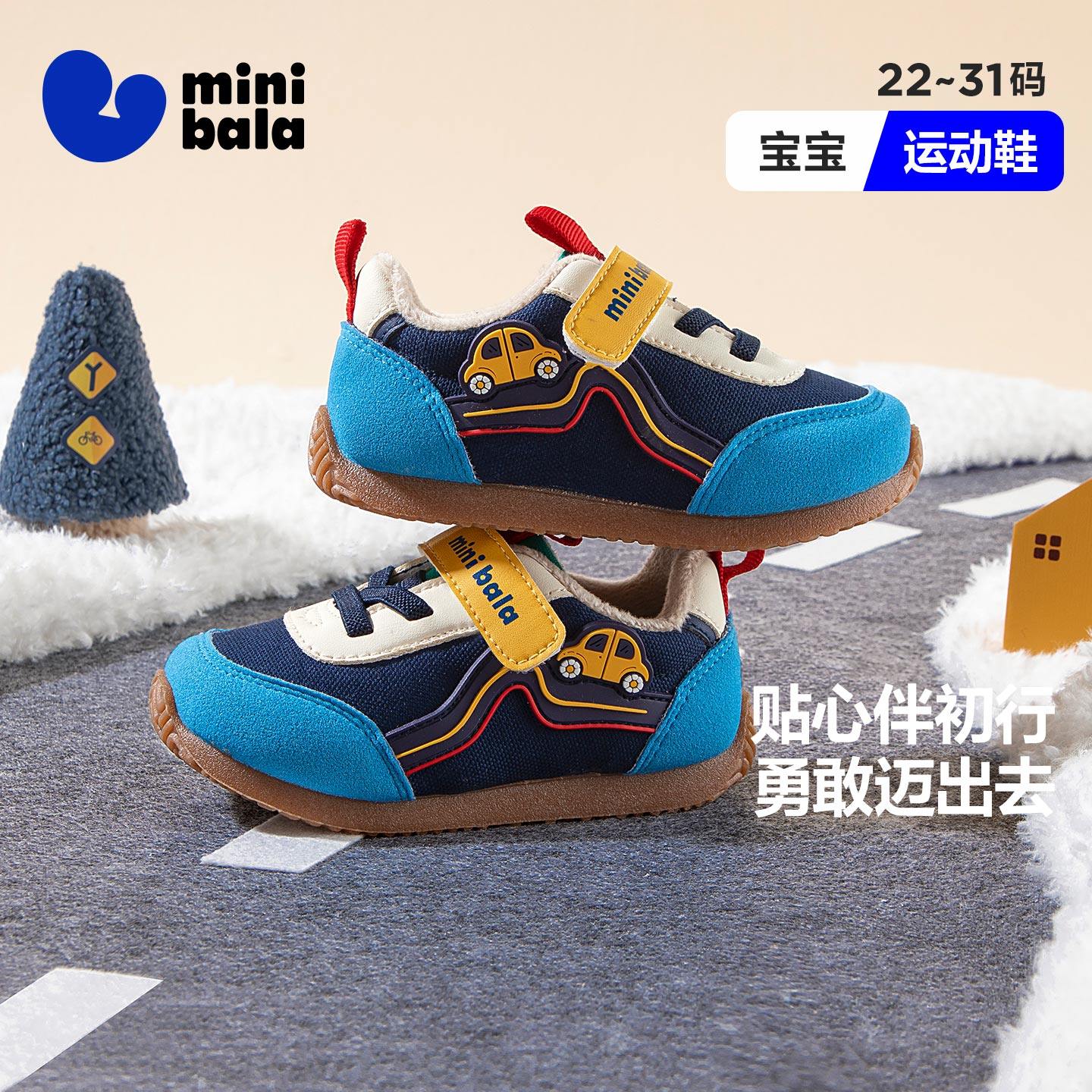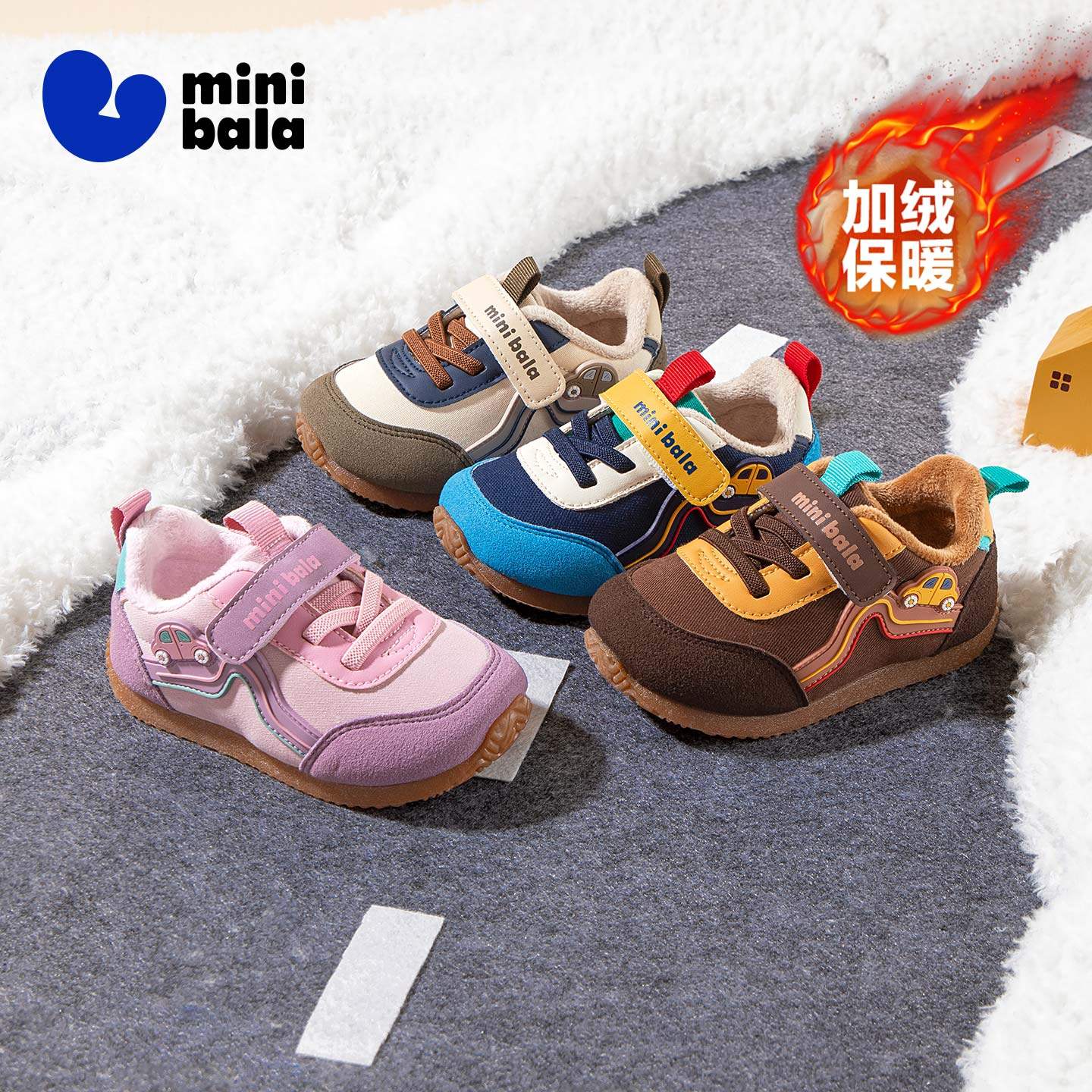 迷你巴拉冬季加绒男女童休闲运动鞋小童德训鞋【小车】宝宝学步鞋