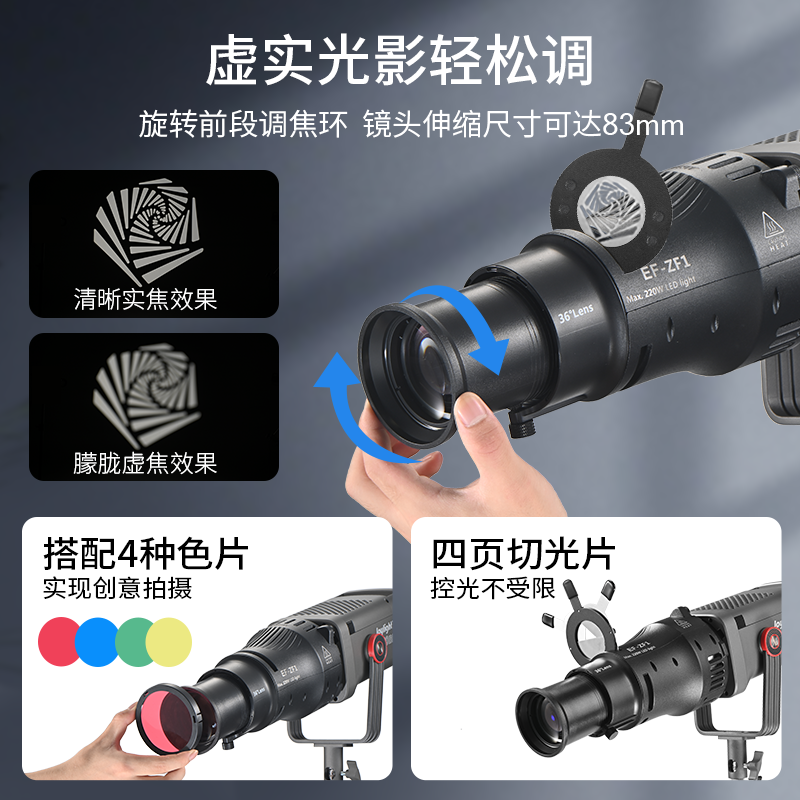 金贝EF-ZF1/ZF2/ZF3调焦成像聚光筒20°/36°/40°镜头艺术造型插片菲涅尔束光筒创意拍摄聚光罩摄影光影附件