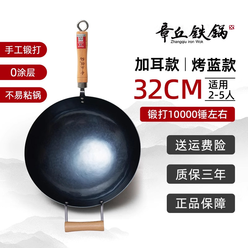 章丘铁锅正品官方旗舰店带耳炒锅传统铁锅手工锻打家用无涂层不粘