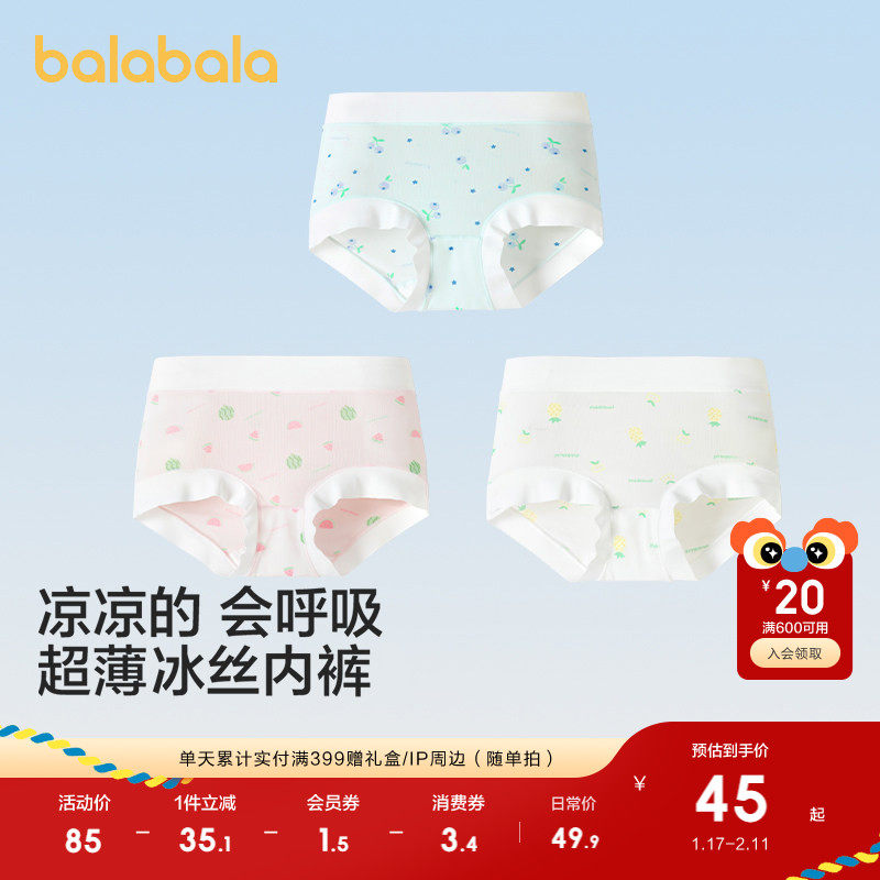 巴拉巴拉男童冰丝内裤平角儿童四角短裤不夹PP中大童亲肤萌三条装