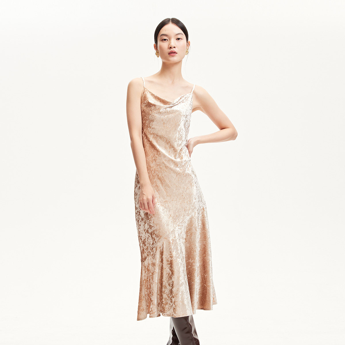 Vero Moda奥莱连衣裙2025秋季新款丝绒吊带收腰亮闪贵气华丽女人