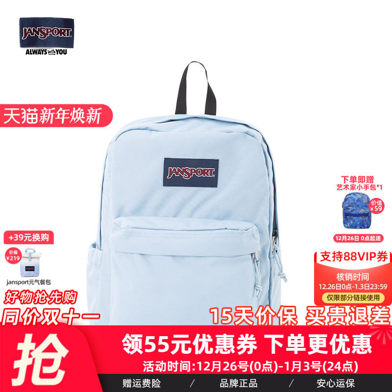 JanSport雾霾蓝多巴胺双肩包女学生书包电脑背包旅游轻便户外旅行
