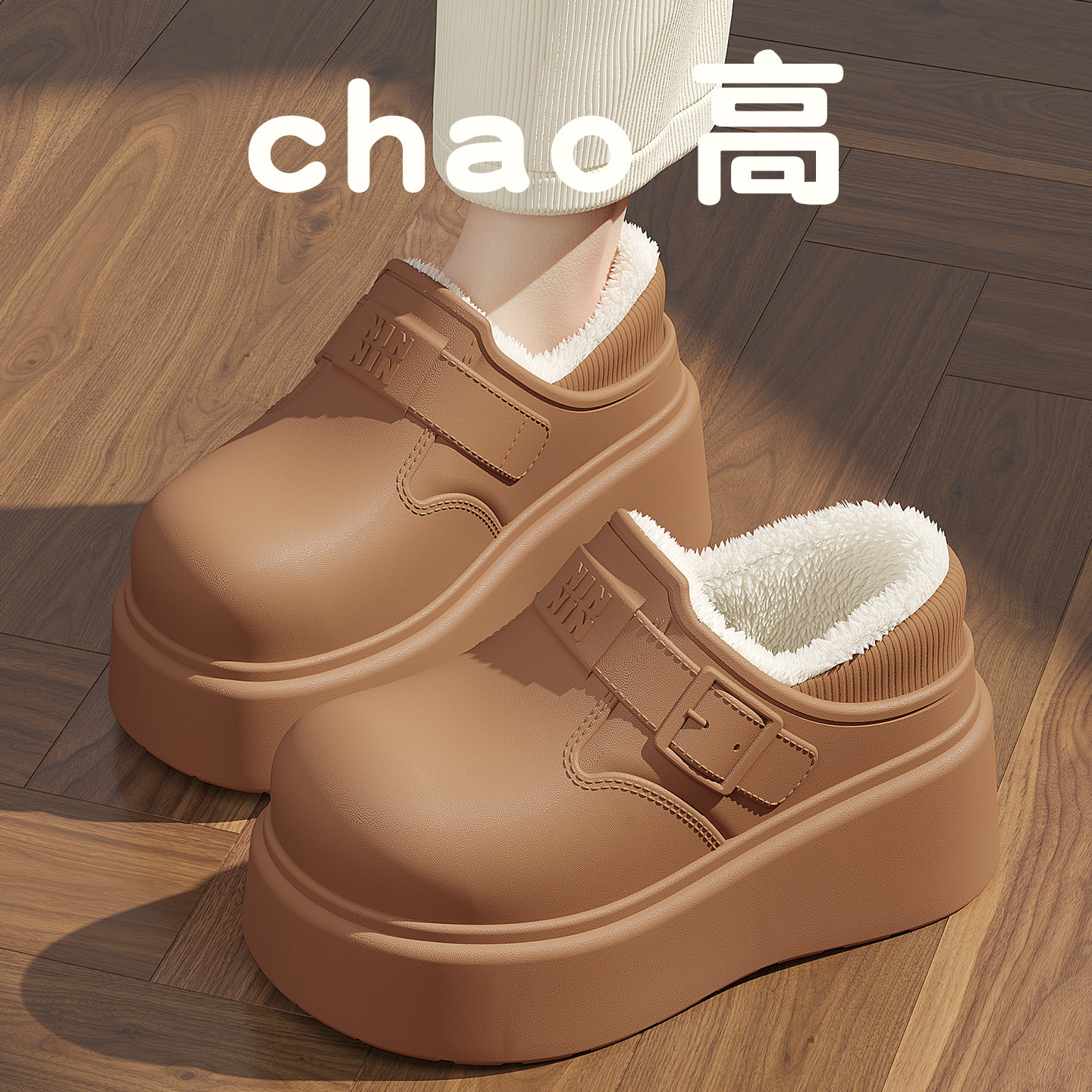 秋冬季2026新款翻半包跟棉拖加绒保暖情侣外穿毛毛绒厚底防滑居家