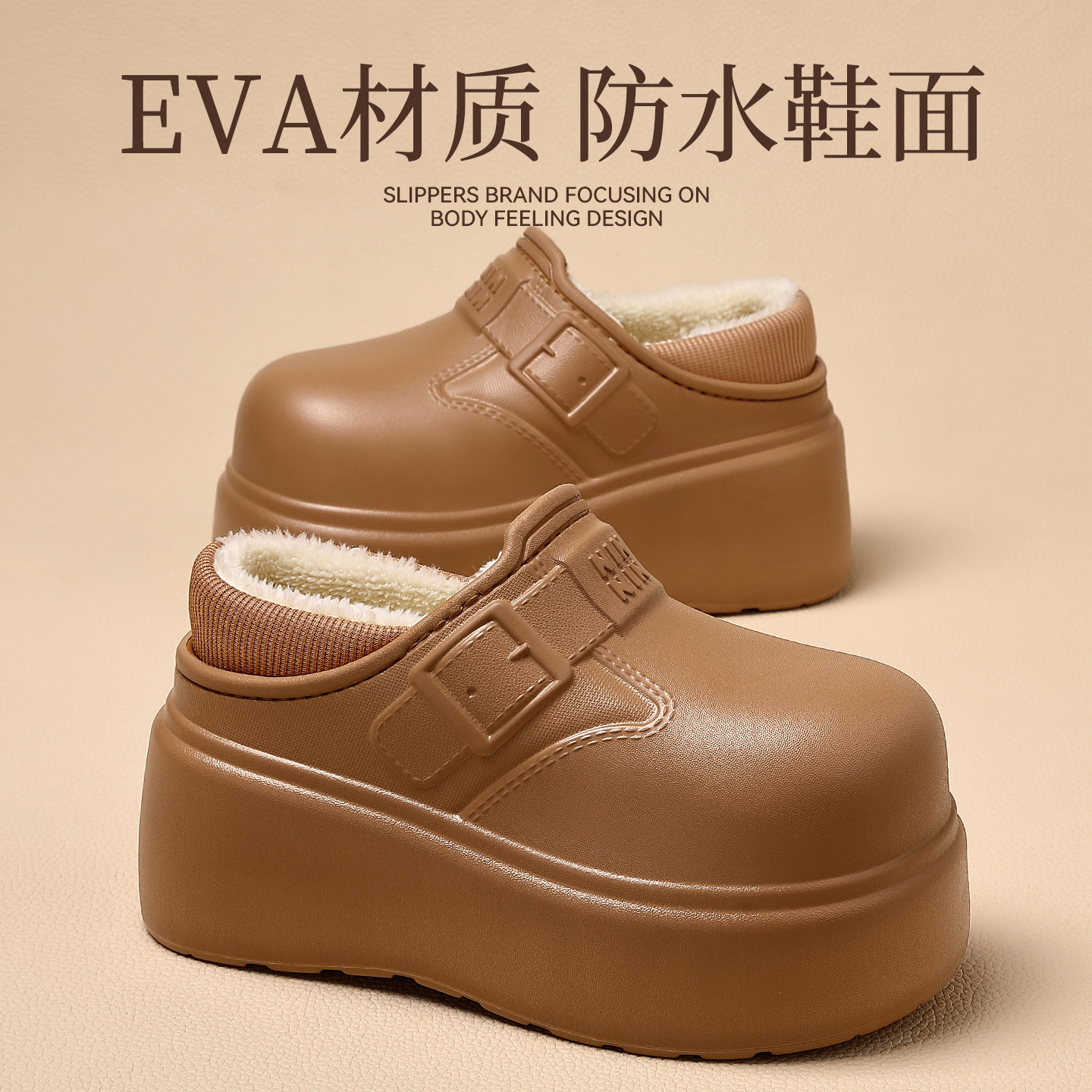 2026新款翻半包跟棉拖加绒保暖情侣外穿毛毛绒厚底防滑居家棉拖鞋