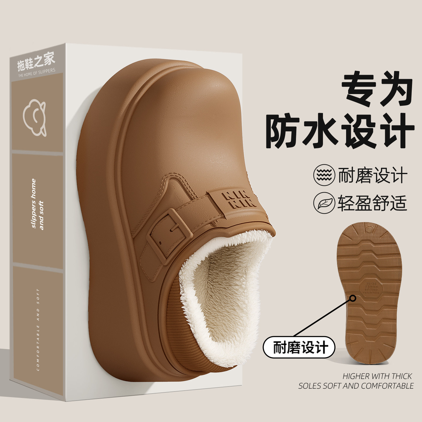 红豆防水棉鞋女款冬季2025新款厚底加绒保暖增高室内家居棉拖鞋男