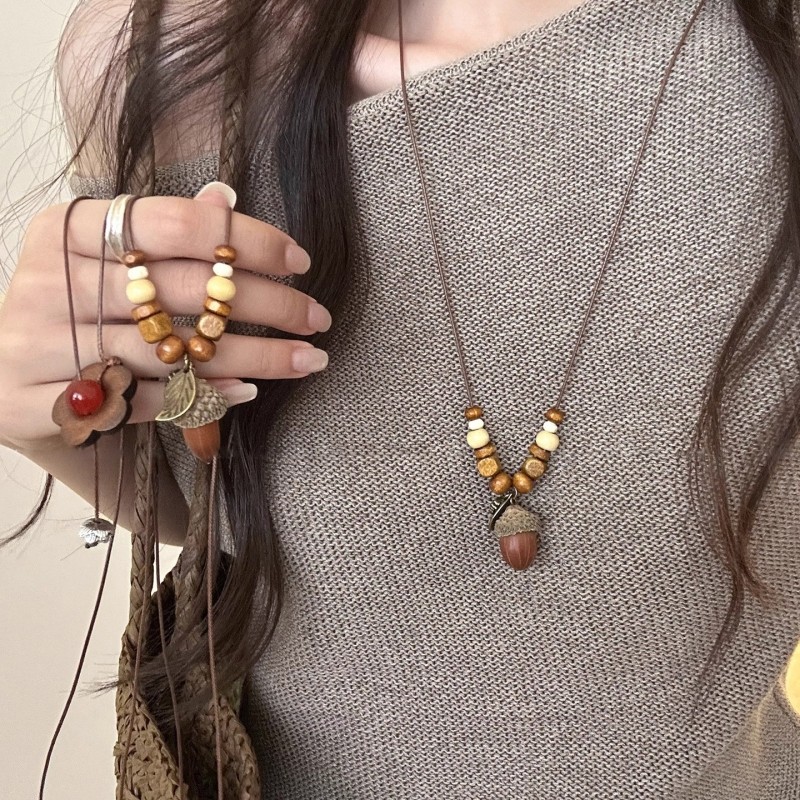 现货橡果森系植物干果毛衣链长款风配饰男女手工编织棉麻服饰项链