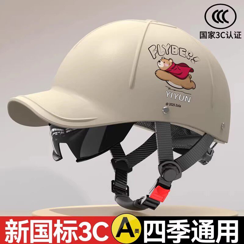 3C认证电动摩托车头盔男女士鸭舌帽半盔四季通用冬季透气轻便安全