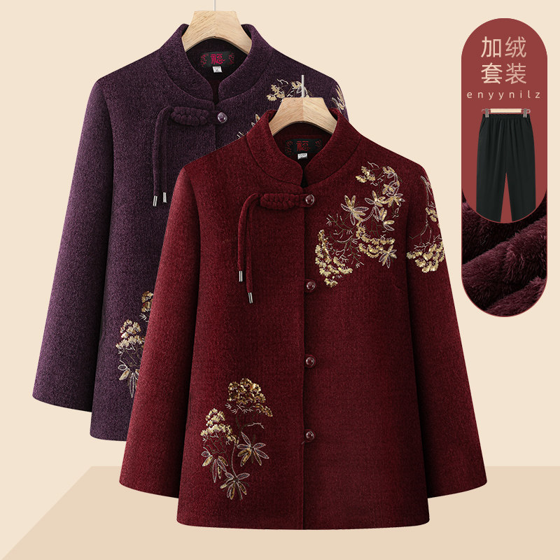 中老年人奶奶冬装红色加绒加厚外套老人老太太喜庆衣服开衫春秋