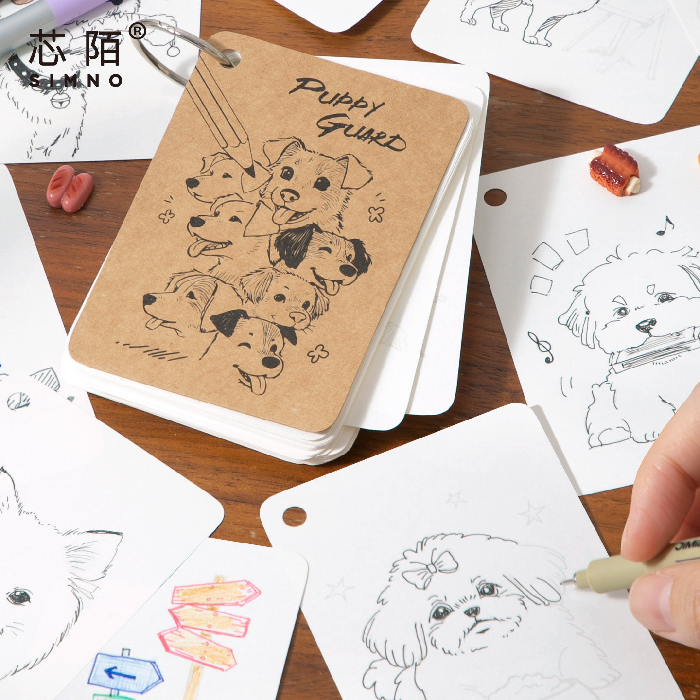 芯陌环扣速写涂色本3.0趣味临摹小画线条画新款小红书同款儿童益智玩具办公室涂色解压休闲玩具萌宠物素描本