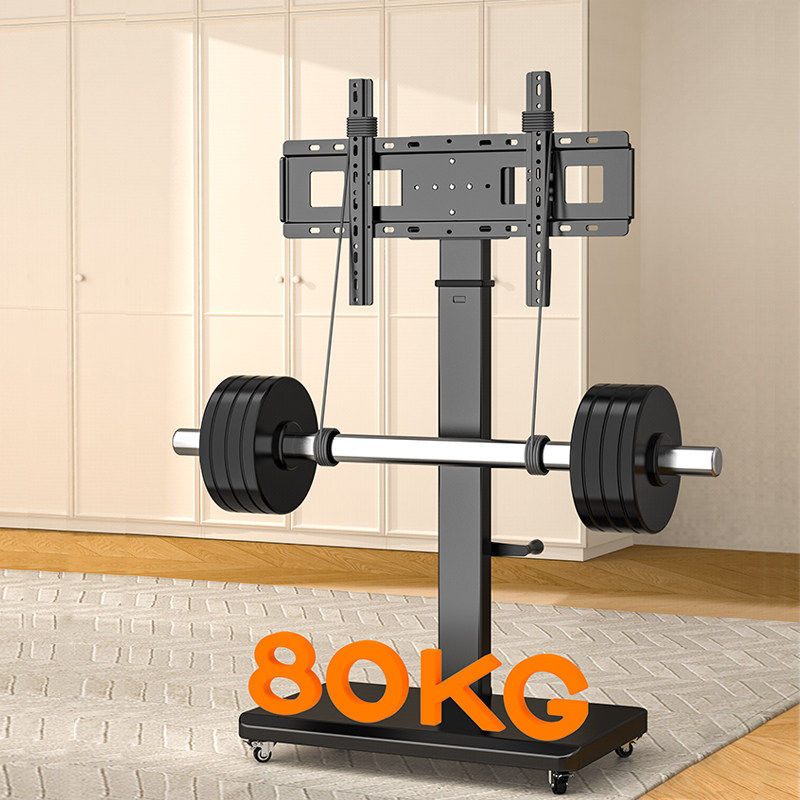 可移动电视机支架落地式立式手摇升降带轮推车显示器通用旋转挂架
