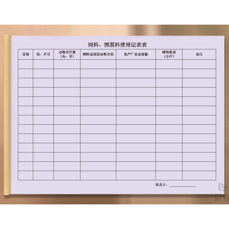 饲料预混料使用记录表辅料登记本原辅料饲料畜牧宠物家畜养殖鸡鸭鹅猪牛羊饲养喂养食物配料记录册防疫登记本