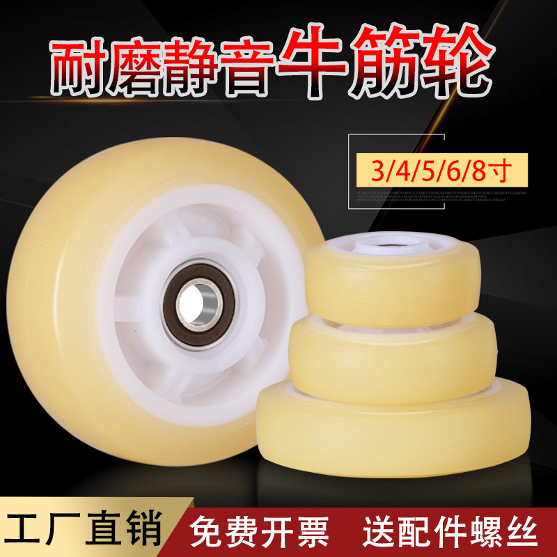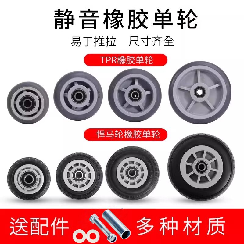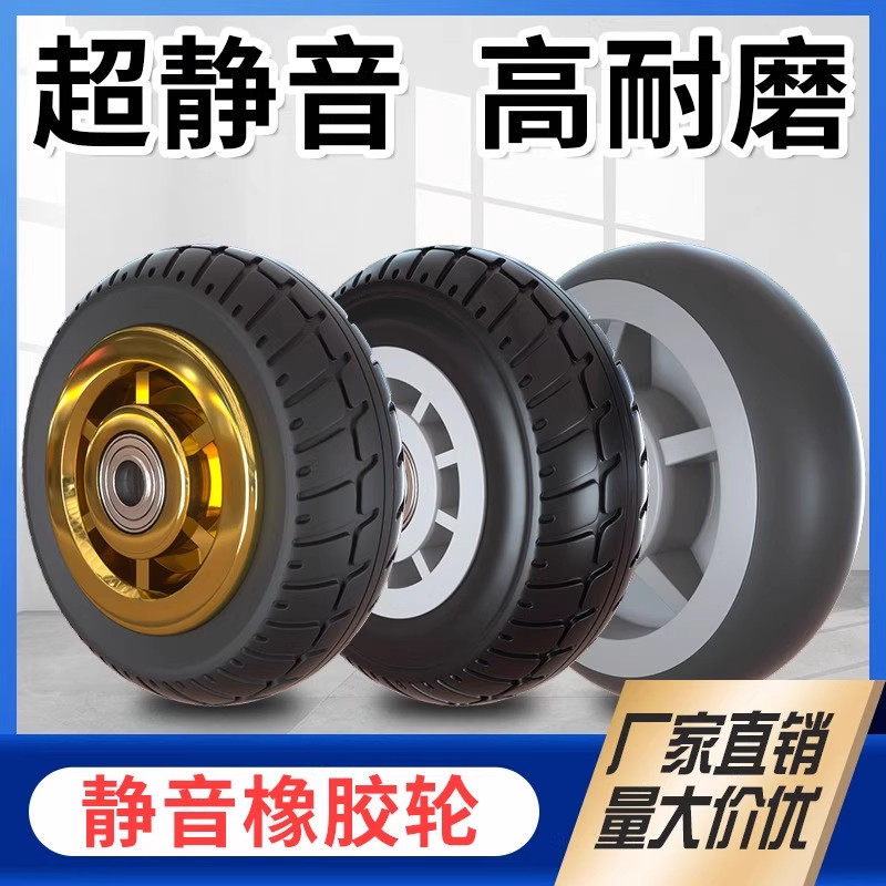 静音橡胶脚轮3/4/5/6/8寸轮子实心手推板车轮拖车万向轮滑轮重型