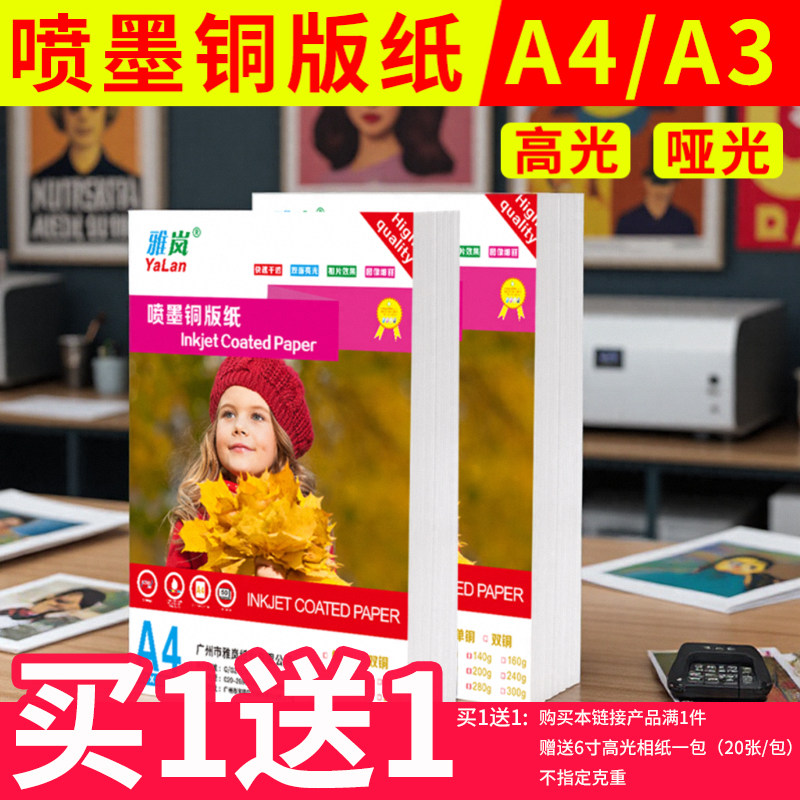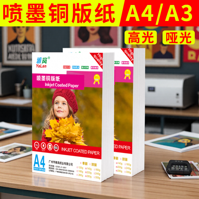 铜版纸A4打印 空白名片奖状印刷铜板纸a3A5200g相纸相册打印专用彩印铜板照片纸适用惠普兄弟佳能喷墨打印机